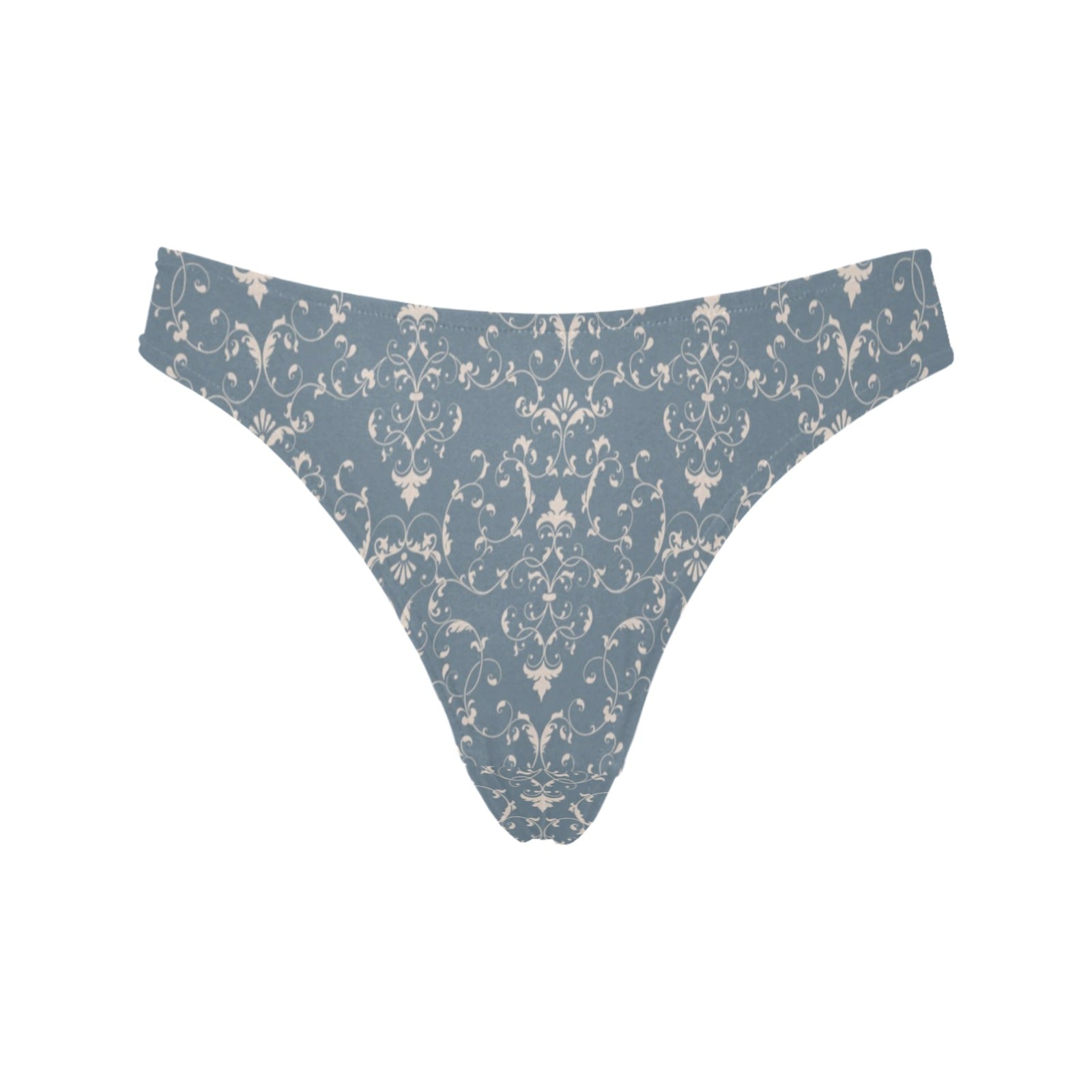 Damask Elegant Teal Print Pattern Women's Thongsis custom-made-to-order and handcrafted to the highest quality standards.