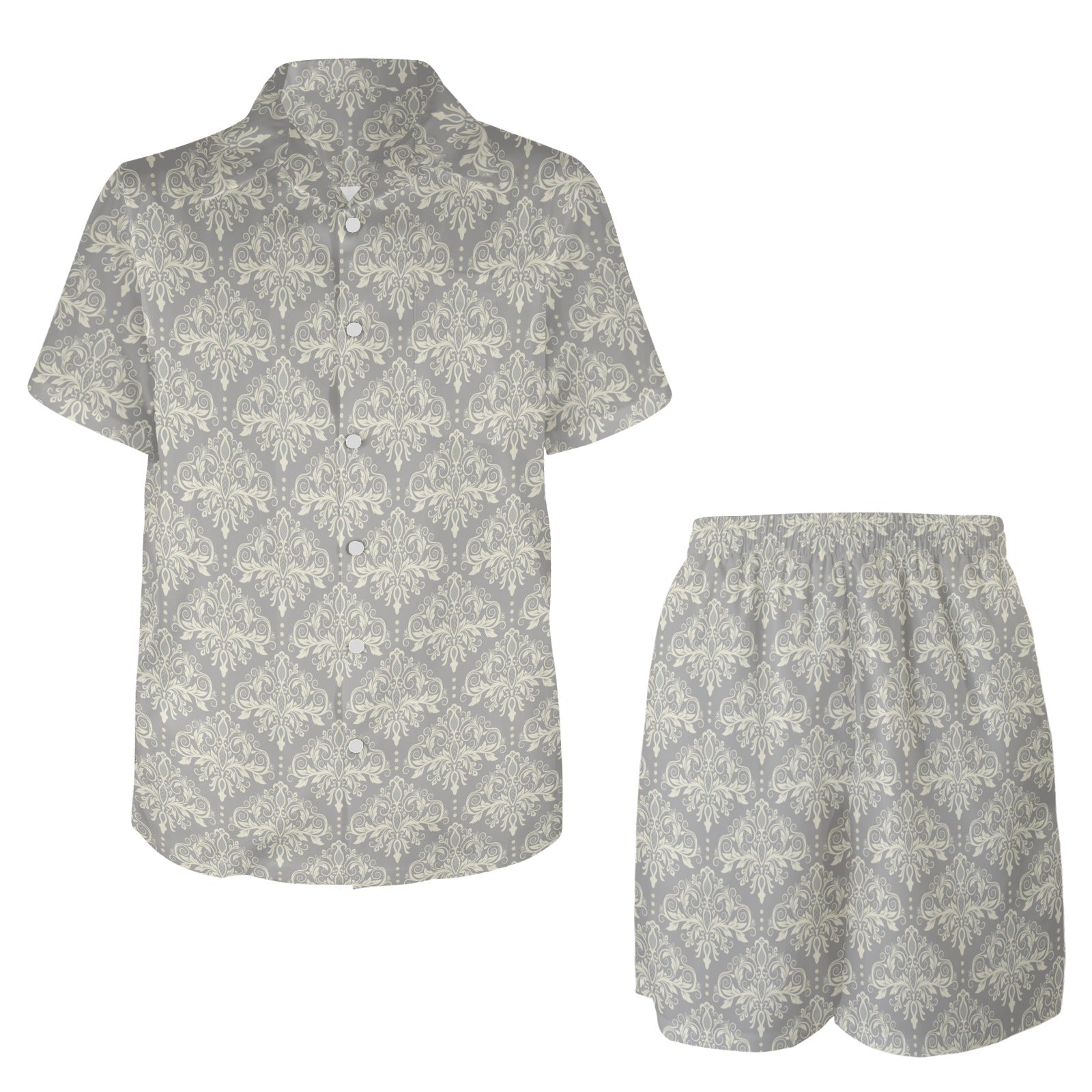 Damask Grey Elegant Print Pattern Men's Beach Shirt and Shorts Set
