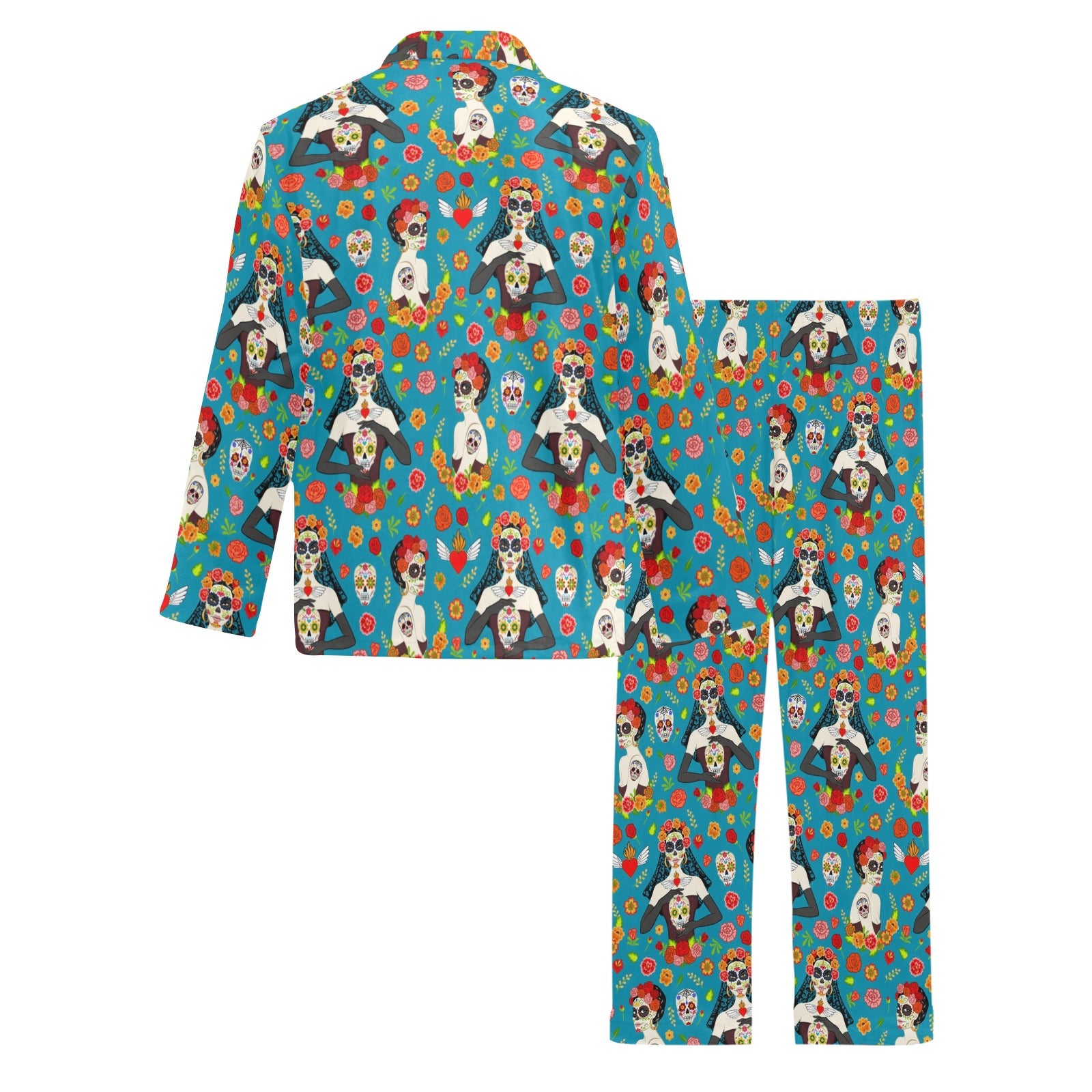 Day of the Dead Old School Girl Design Men's Long Pajama Set custom-made-to-order and handcrafted to the highest quality standards.