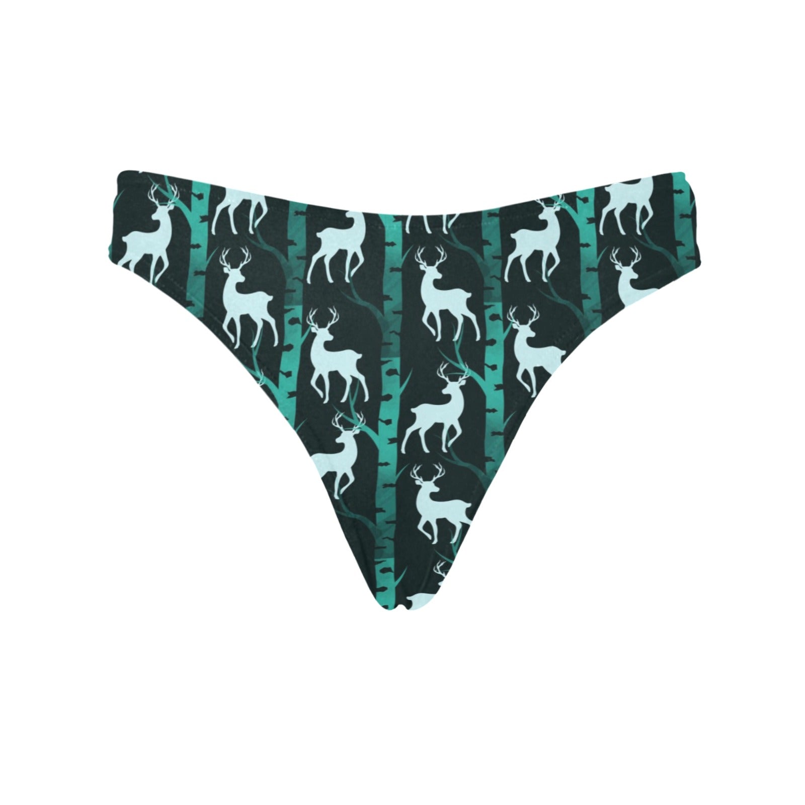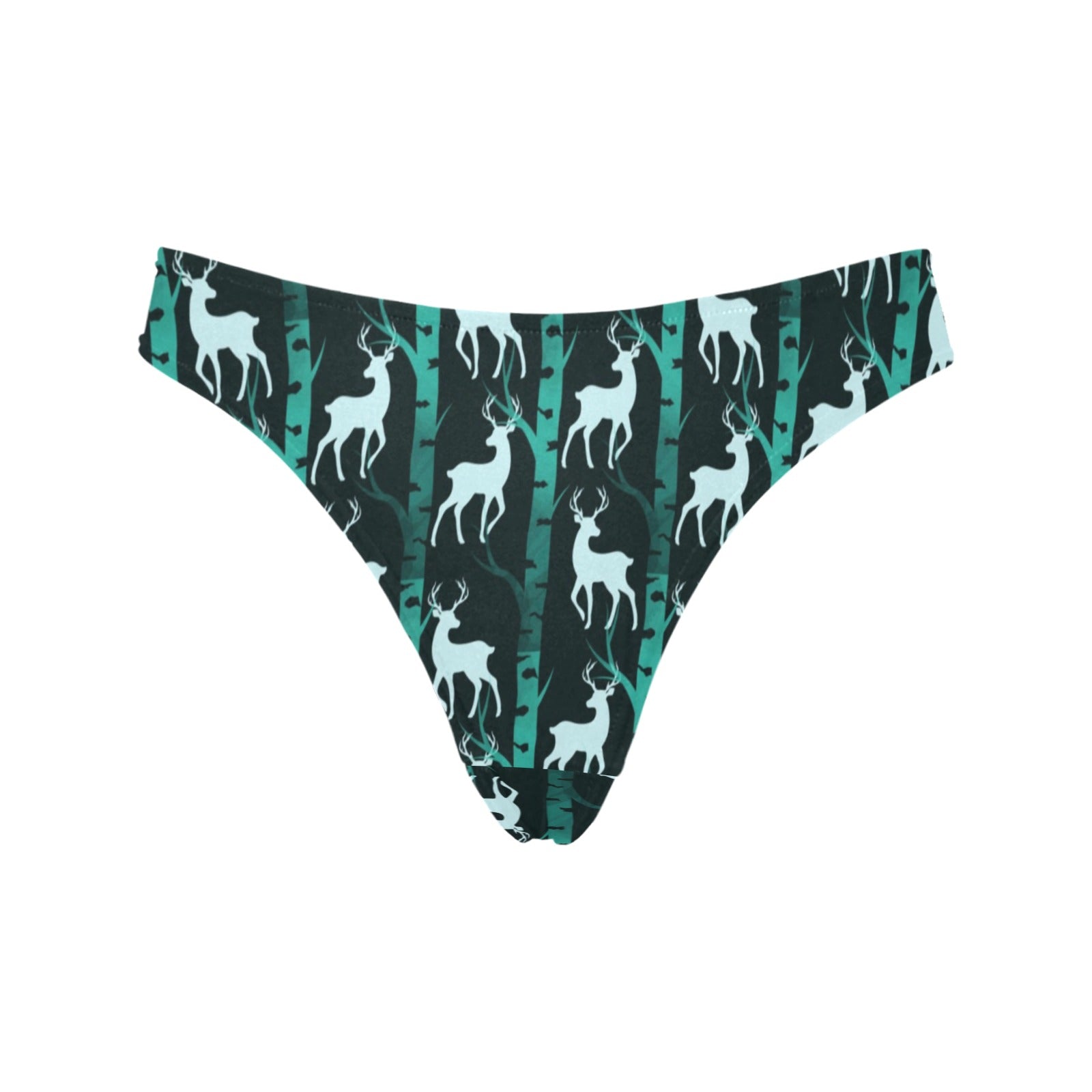 Deer Jungle Print Pattern Women's Thongsis custom-made-to-order and handcrafted to the highest quality standards.