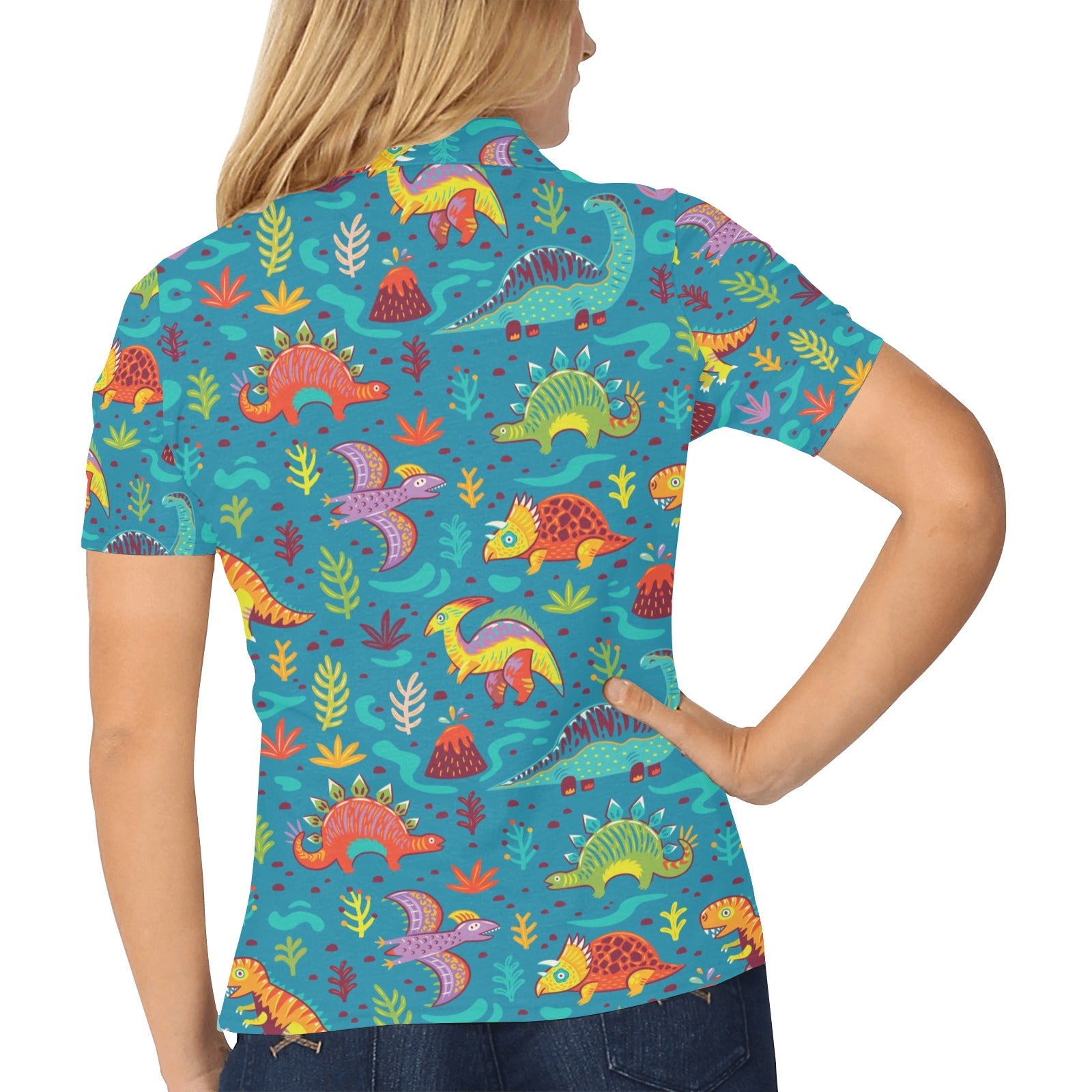 Dinosaur Cartoon Style Women's Polo Shirt
