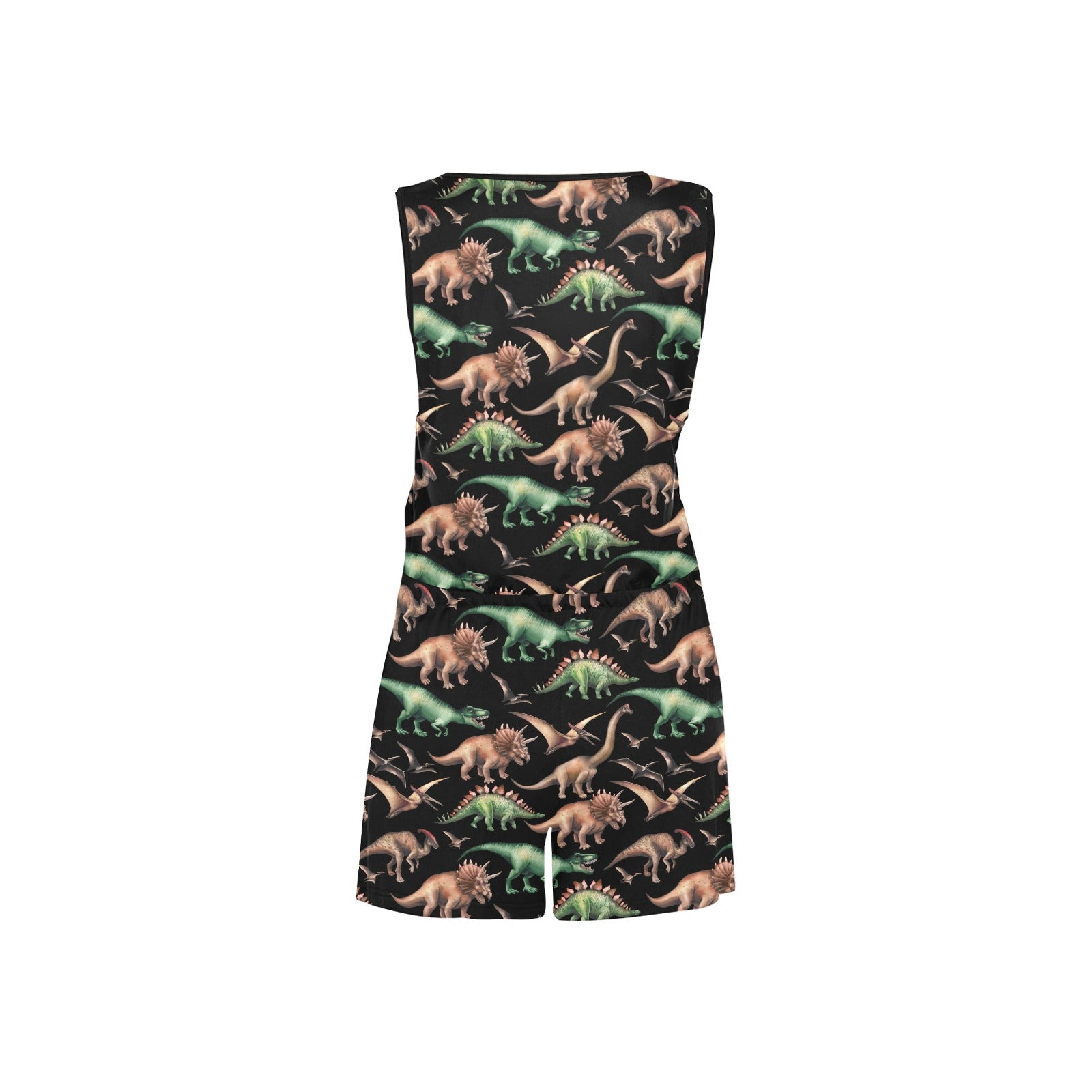 Dinosaur Print Pattern Women's Sleeveless Romper