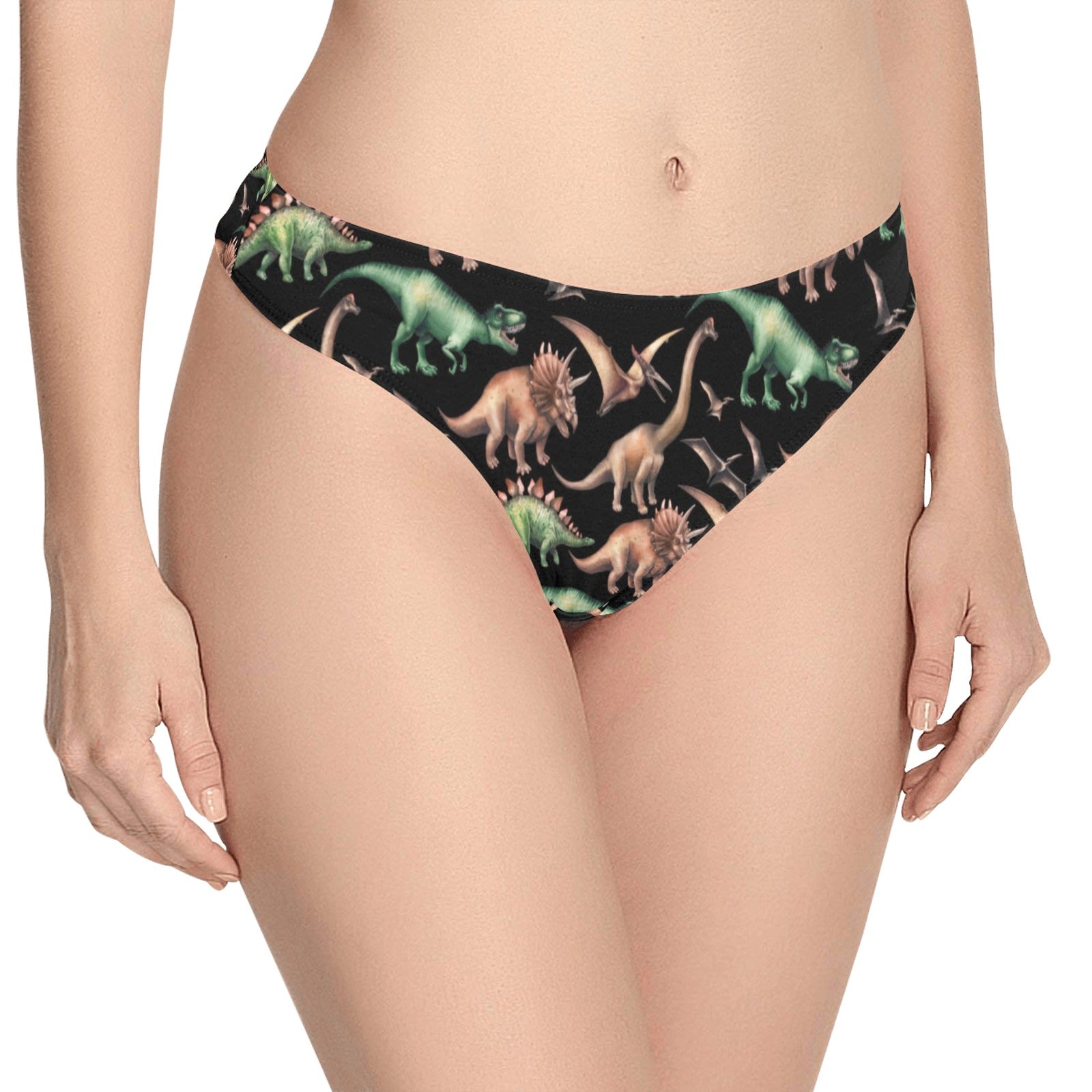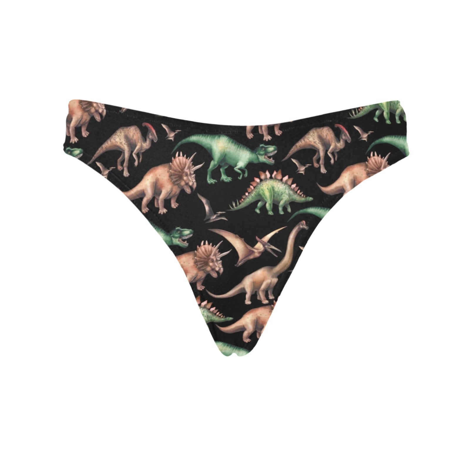 Dinosaur Print Pattern Women's Thongsis custom-made-to-order and handcrafted to the highest quality standards.