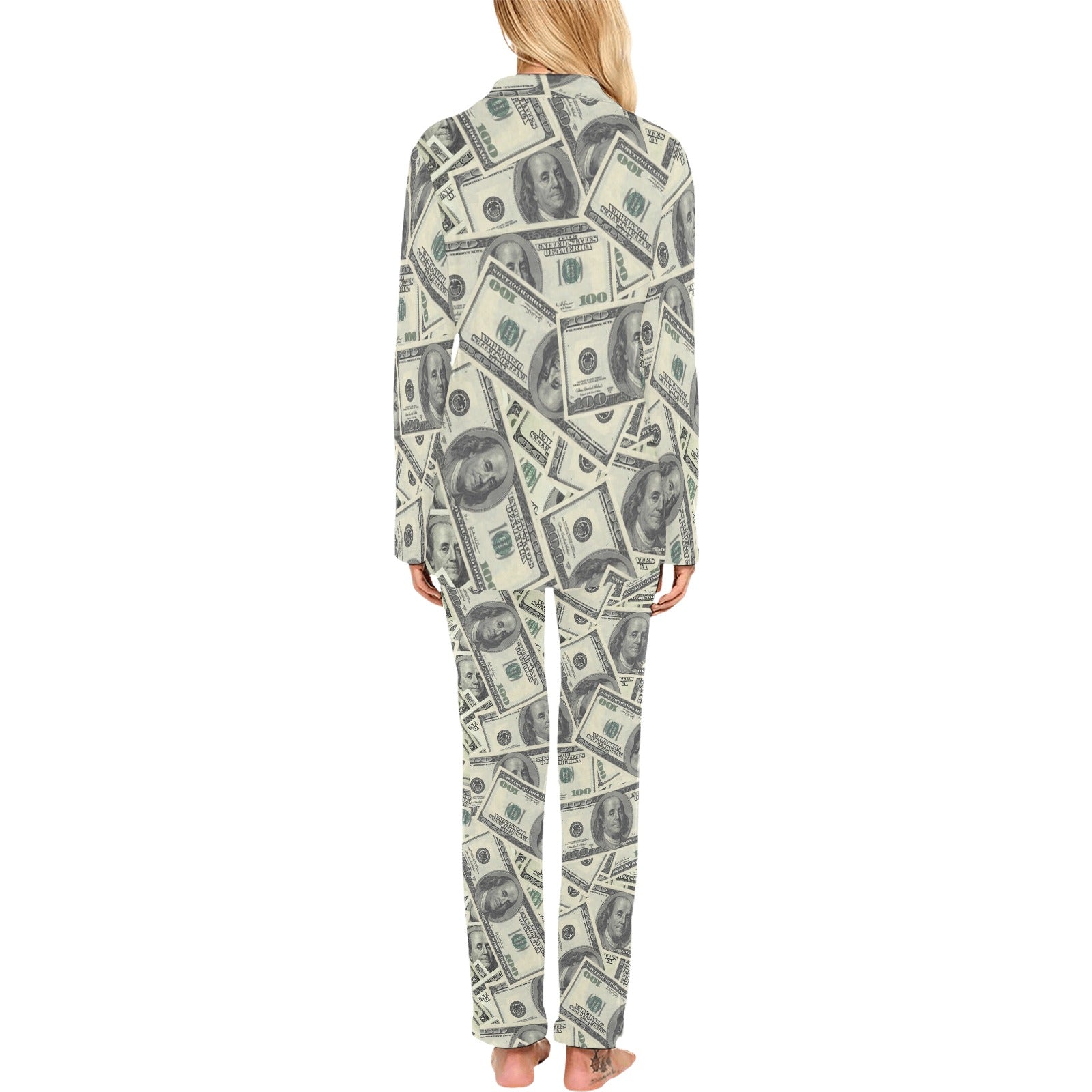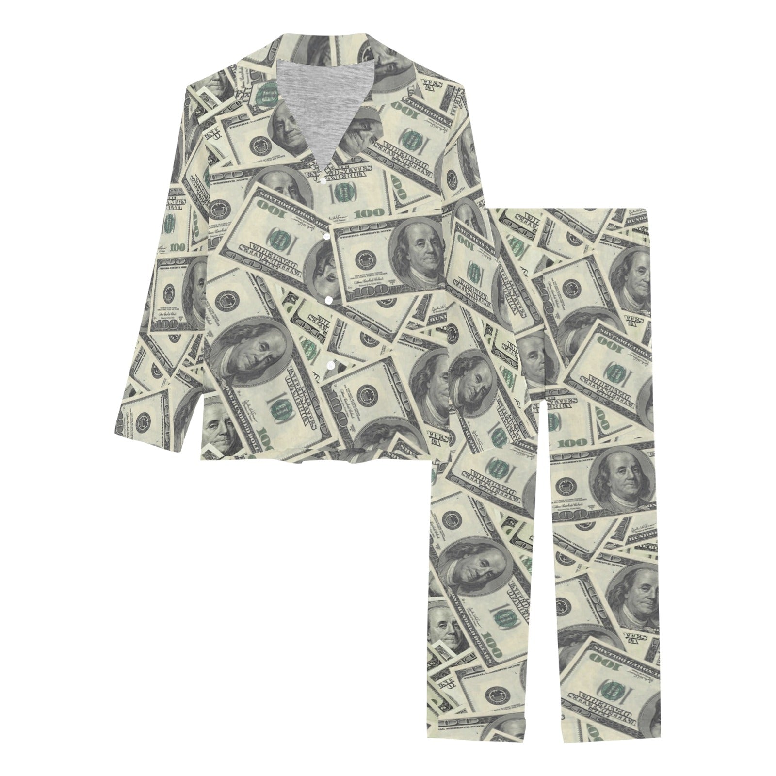 Dollar Pattern Print Design DO02 Women's Long Pajama Set Made to Order Item. It is hand-cut and sewn just for your order! This process starts as soon as your order is placed and may have a processing time of 5-9 business days before it ships.