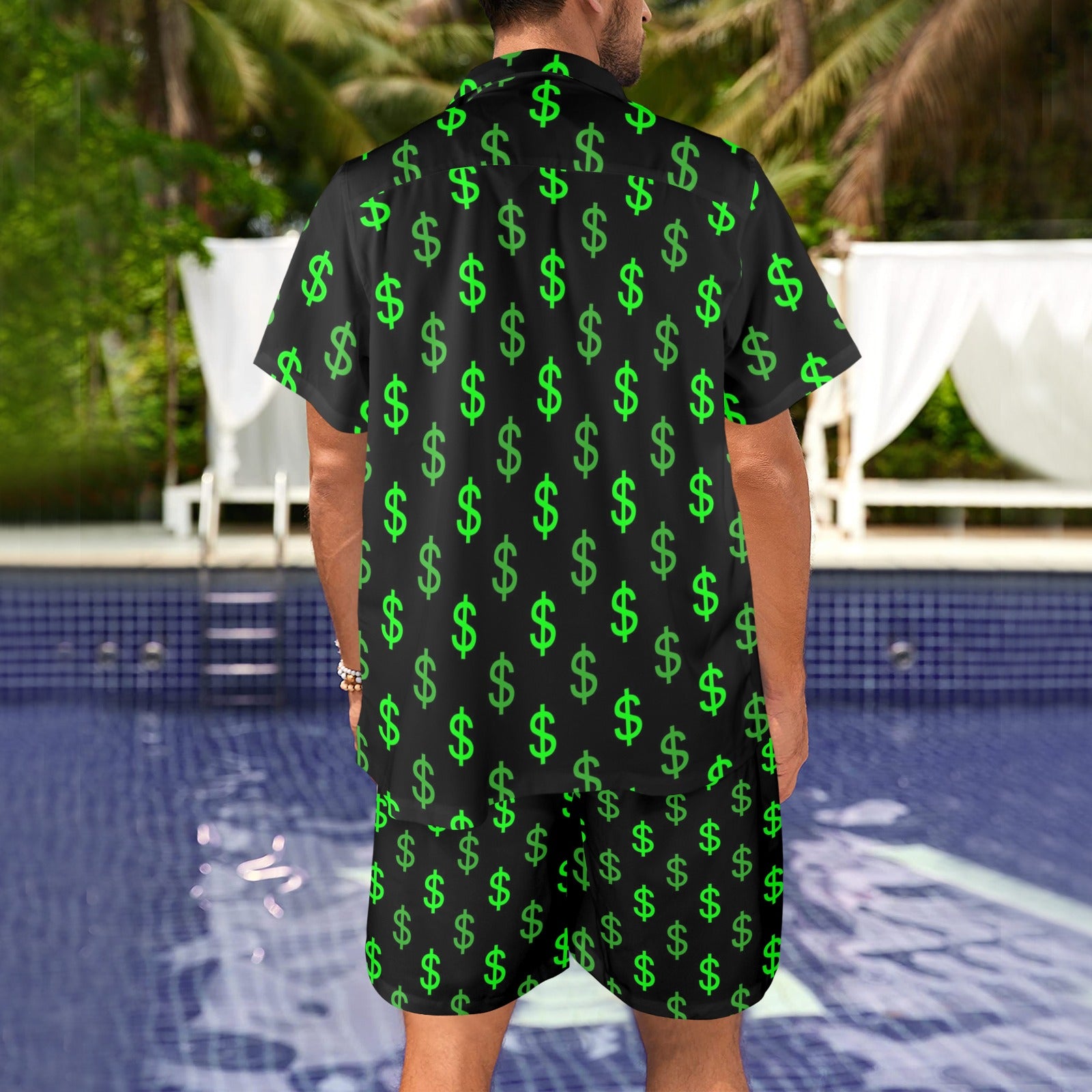 Dollar symbol Design Print Pattern JJ0121 Men's Beach Shirt and Shorts Set. It is hand-cut and sewn just for your order! This process starts as soon as your order is placed and may have a processing time of 5-9 business days before it ships.