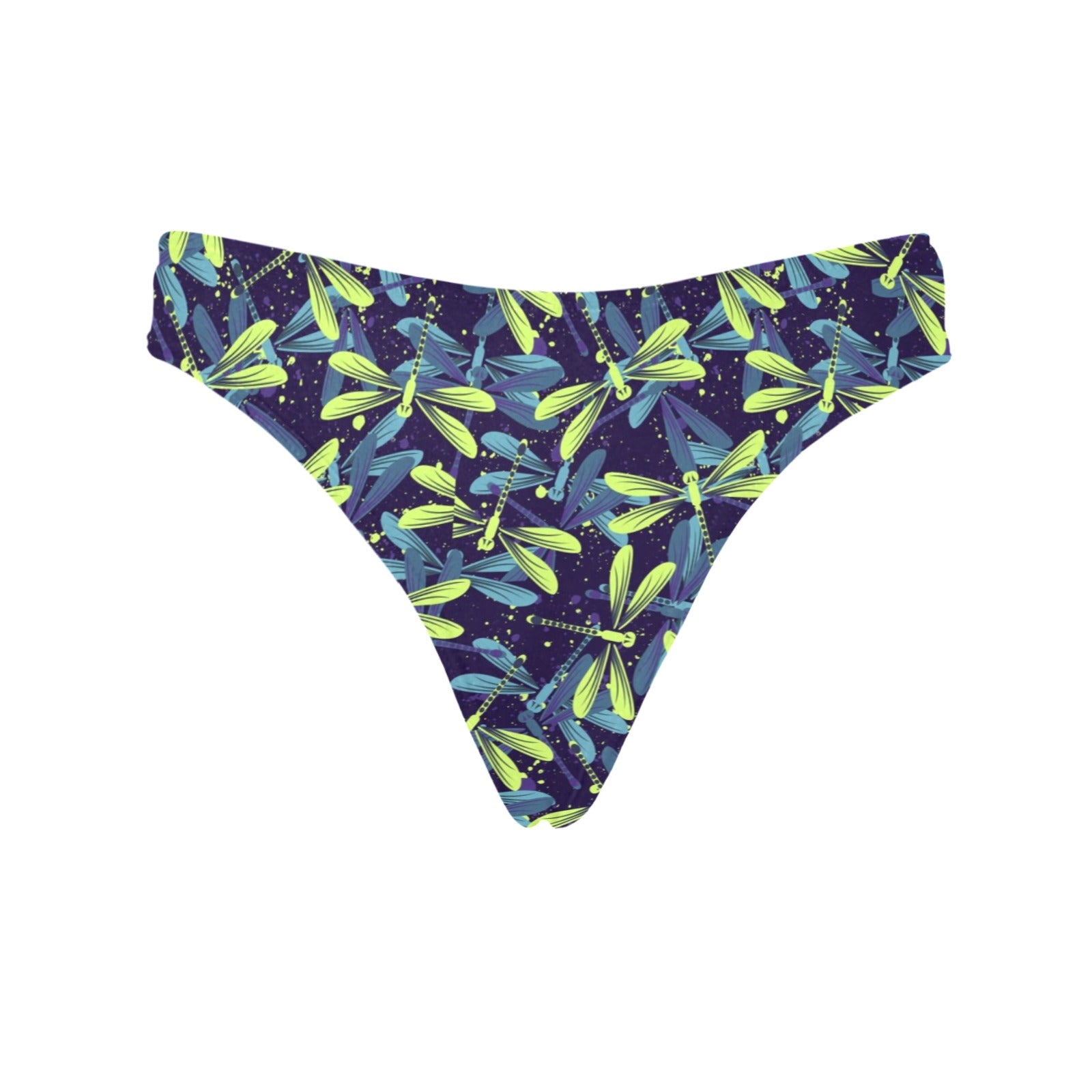 Dragonfly Lime Blue Print Pattern Women's Thongsis custom-made-to-order and handcrafted to the highest quality standards.