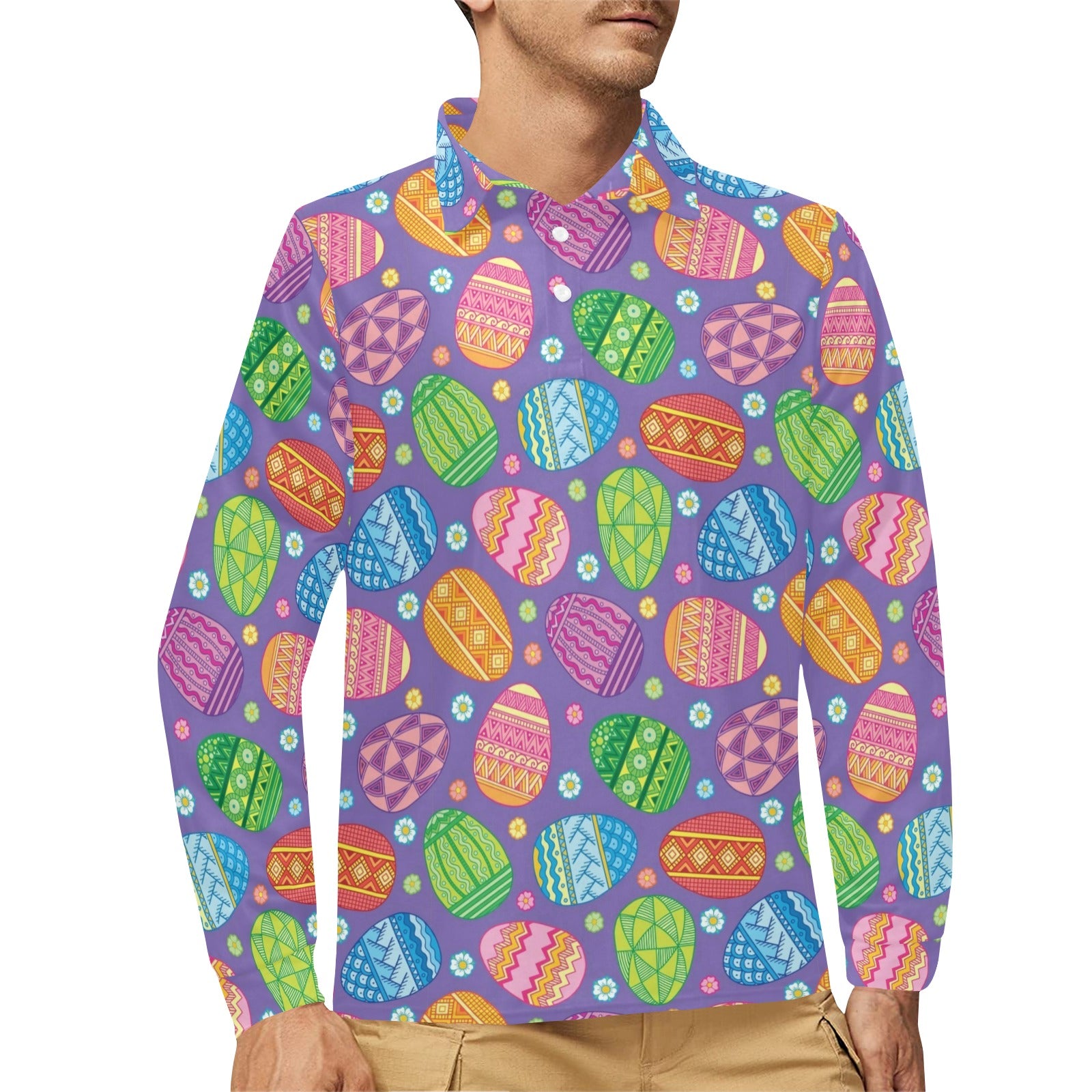 Easter Eggs Pattern Print Design RB010 Long Sleeve Polo Shirt For Men's custom-made-to-order and handcrafted to the highest quality standards.