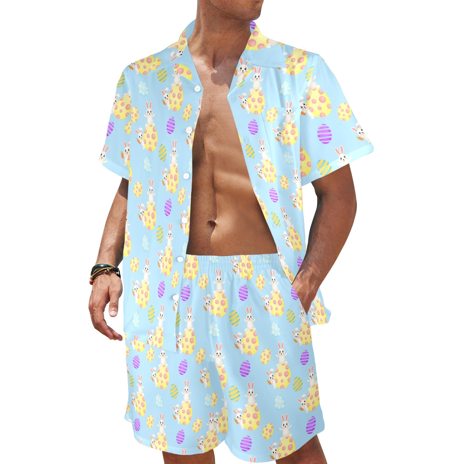 Easter Eggs Pattern Print Design RB015 Men's Beach Shirt and Shorts Set. It is hand-cut and sewn just for your order! This process starts as soon as your order is placed and may have a processing time of 5-9 business days before it ships.