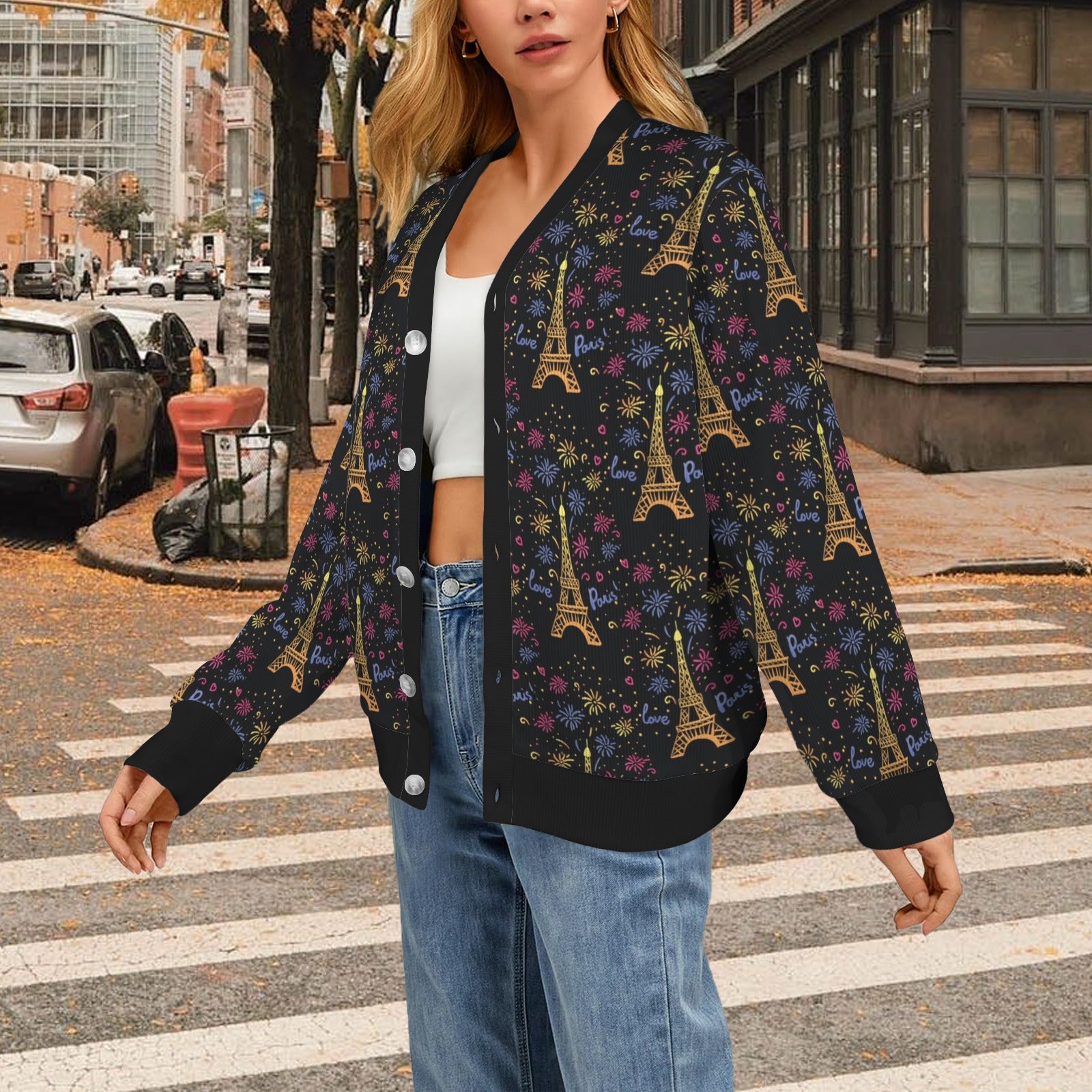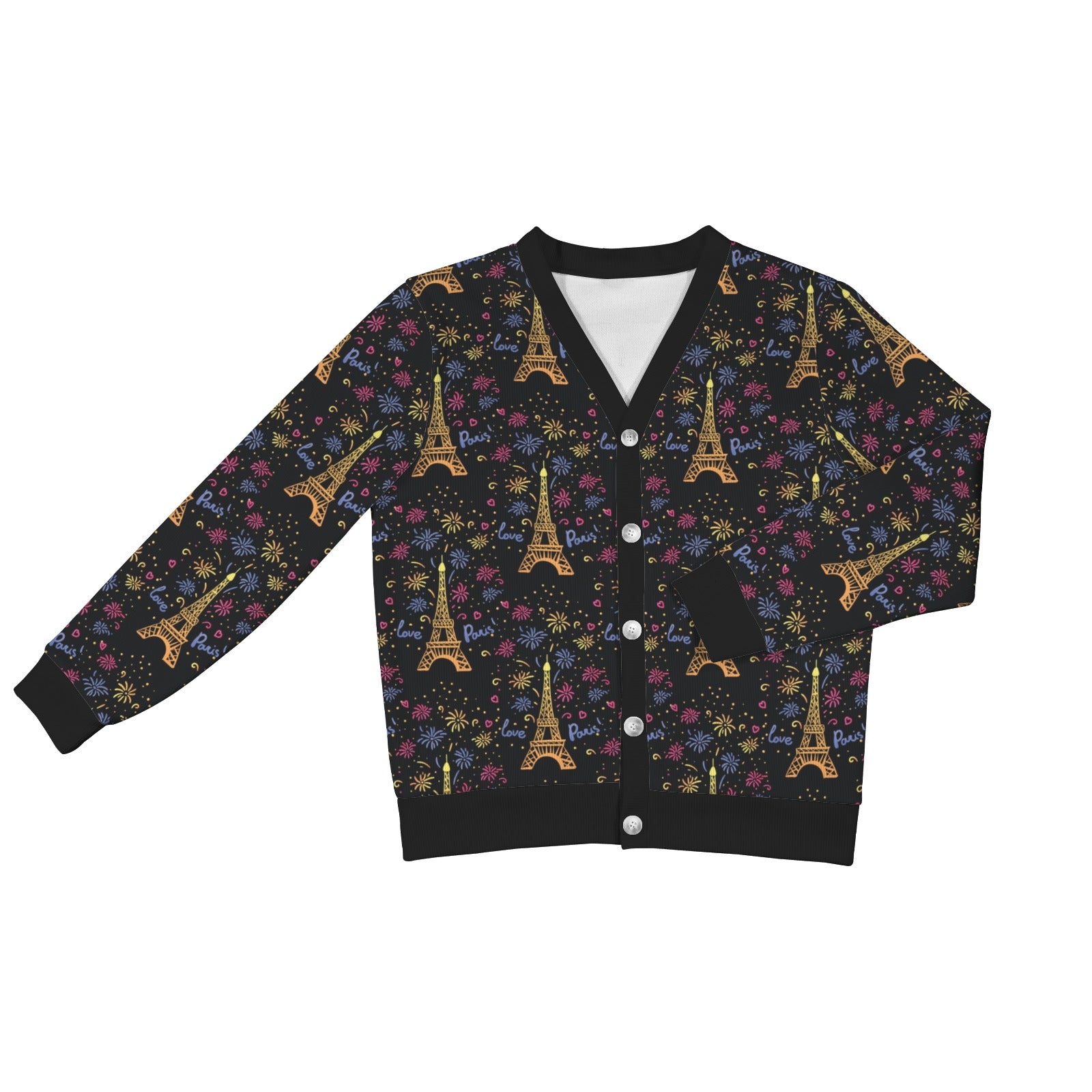 Eiffel Tower Love Paris Print Women's Cardigan made-to-order and handcrafted to the highest quality standards.