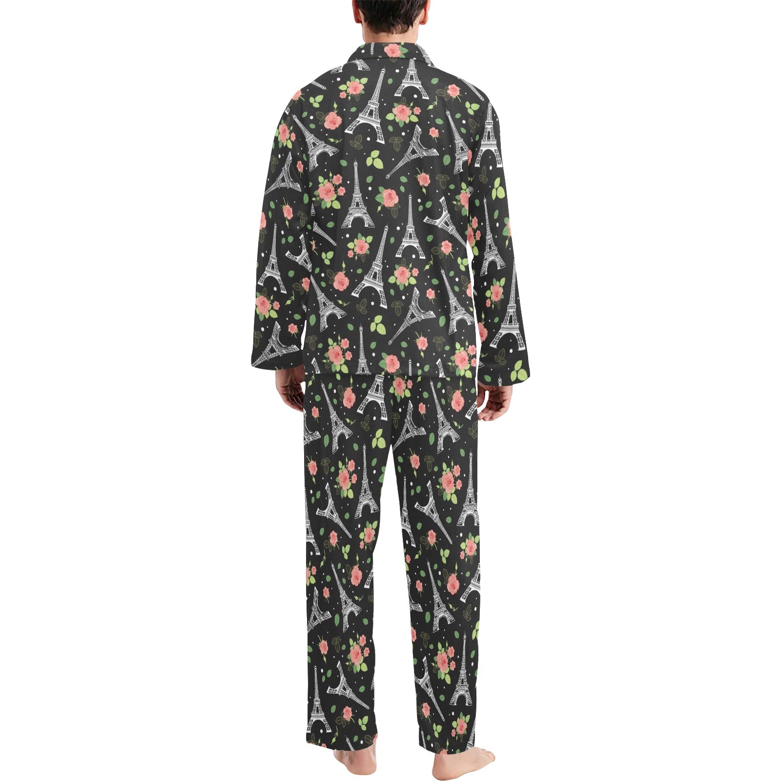 Eiffel Tower Rose Print Men's Long Pajama Set