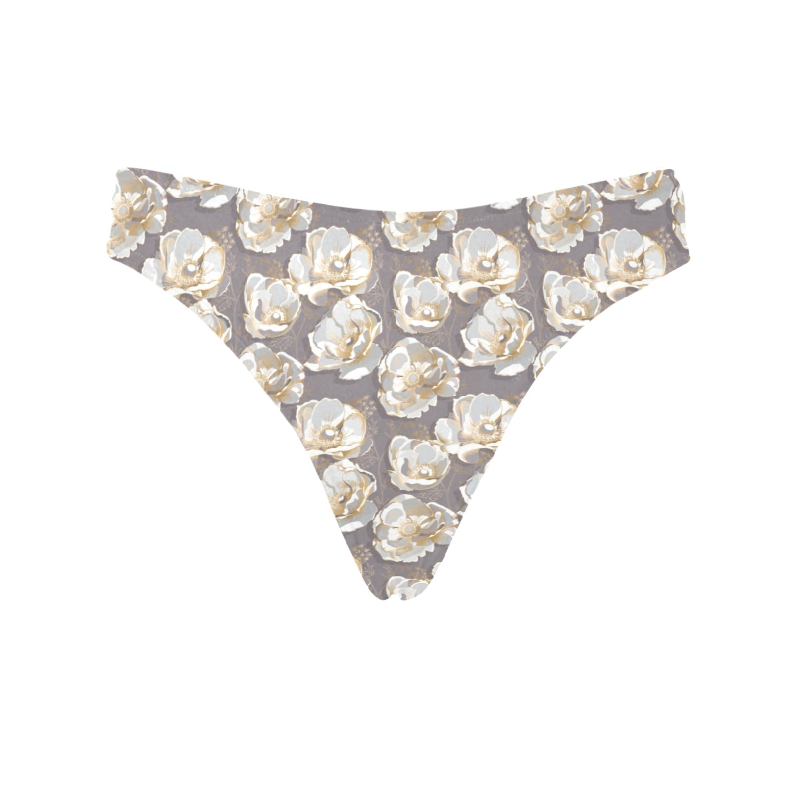 Elegant Grey Flower Print Women's Thongsis custom-made-to-order and handcrafted to the highest quality standards.