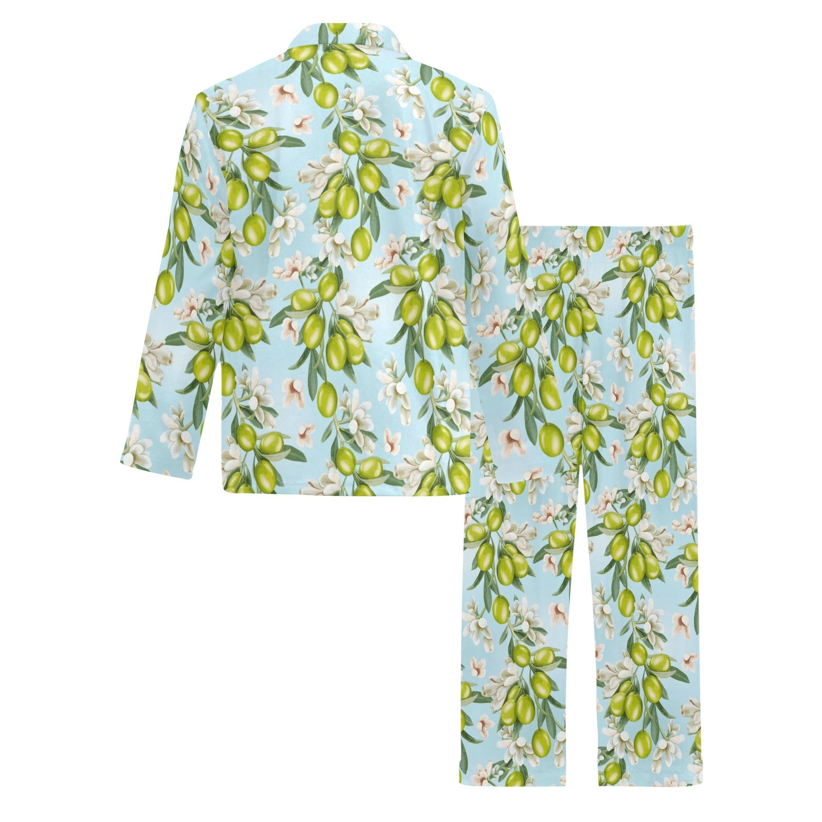 Elegant Olive Floral Print Men's Long Pajama Set custom-made-to-order and handcrafted to the highest quality standards.