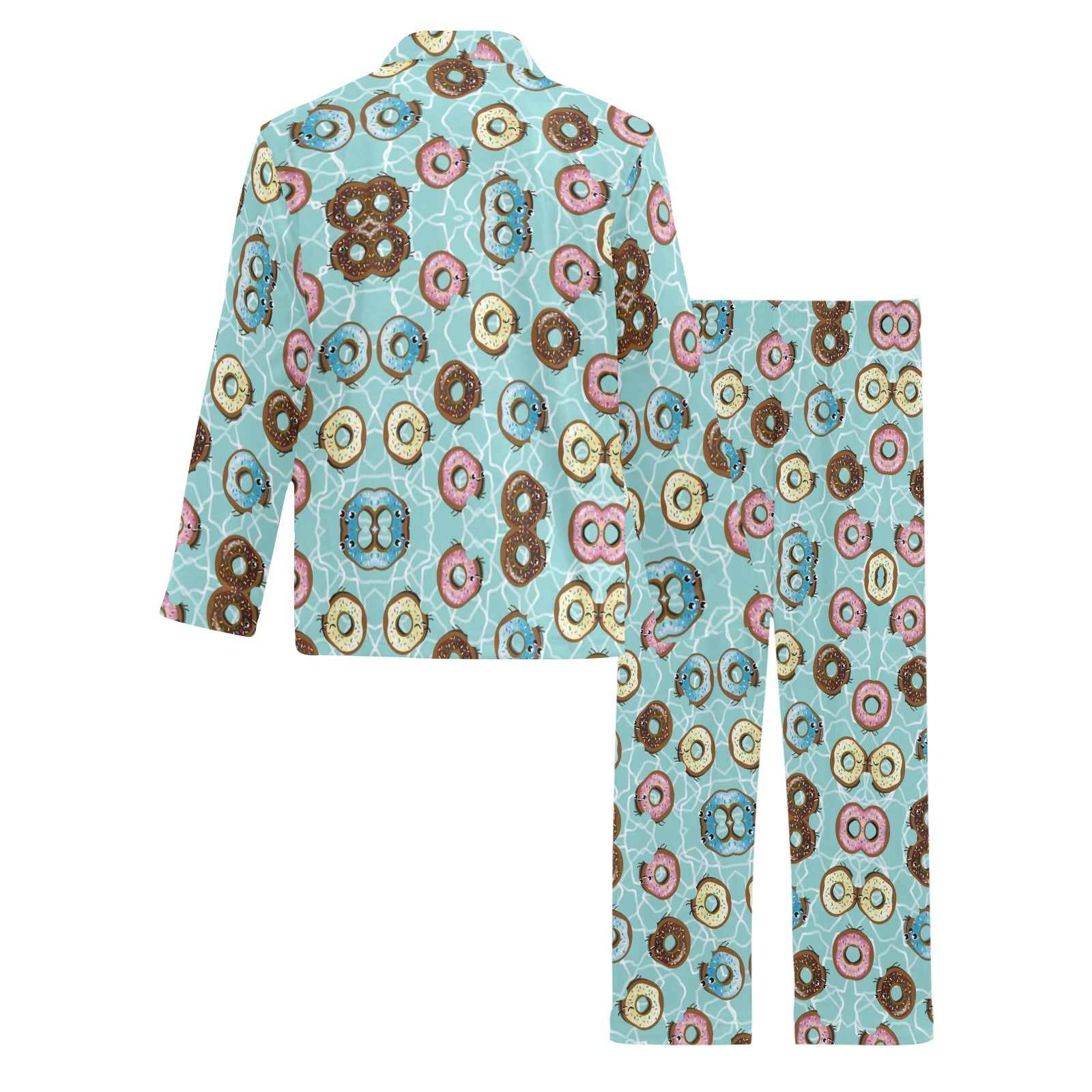 Emoji Donut Print Pattern Men's Long Pajama Set custom-made-to-order and handcrafted to the highest quality standards.