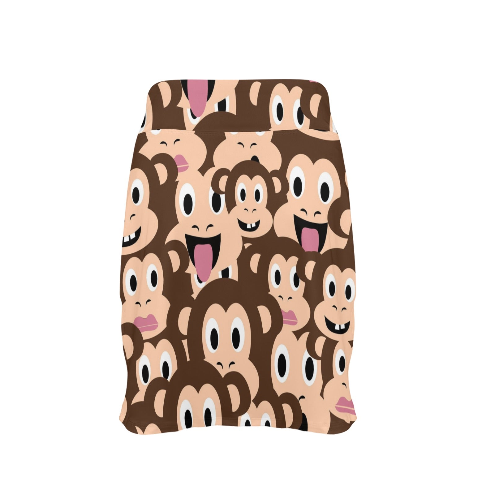 Emoji Monkey Print Pattern Women's Golf Skirt with Pocket