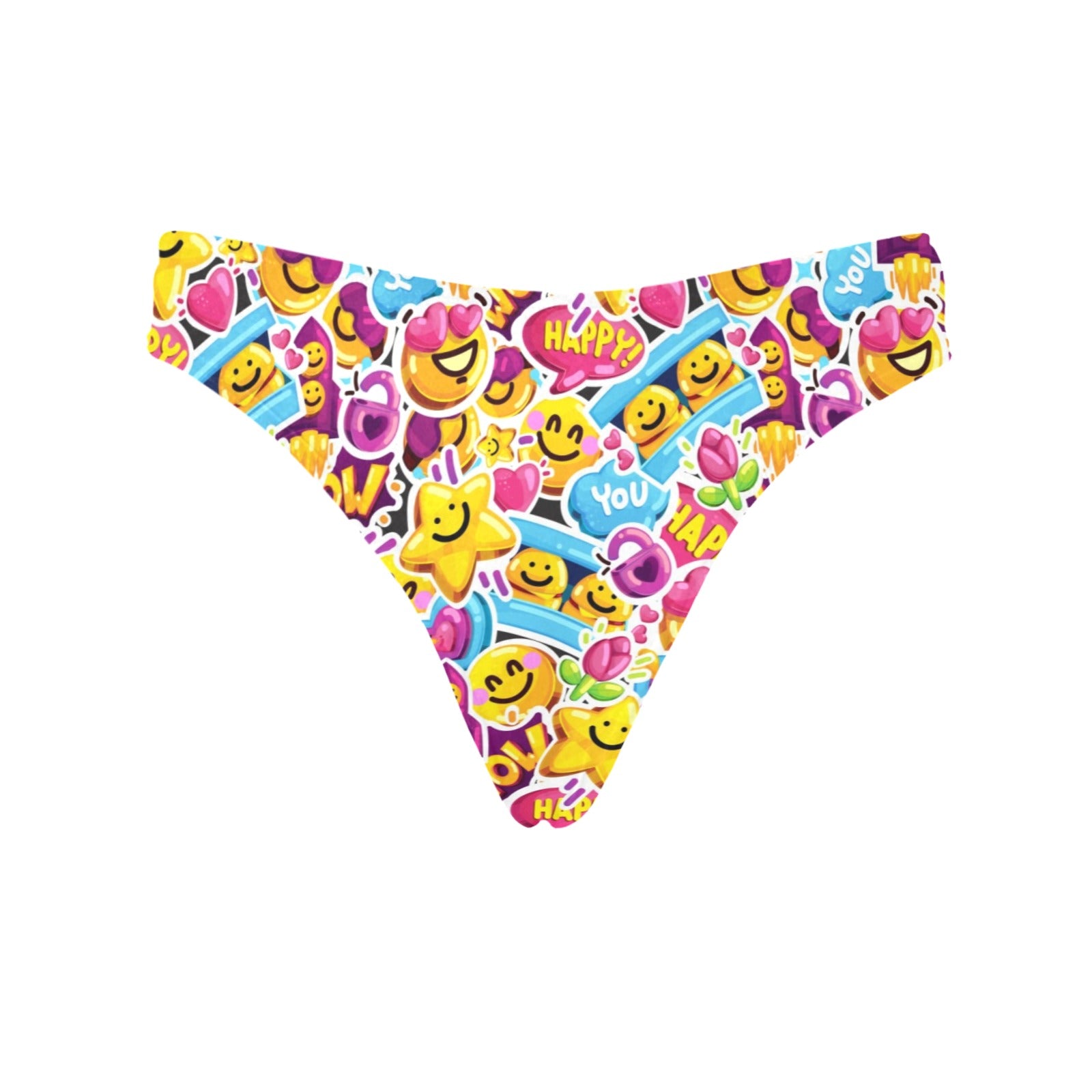 Emoji Sticker Print Pattern Women's Thongsis custom-made-to-order and handcrafted to the highest quality standards.