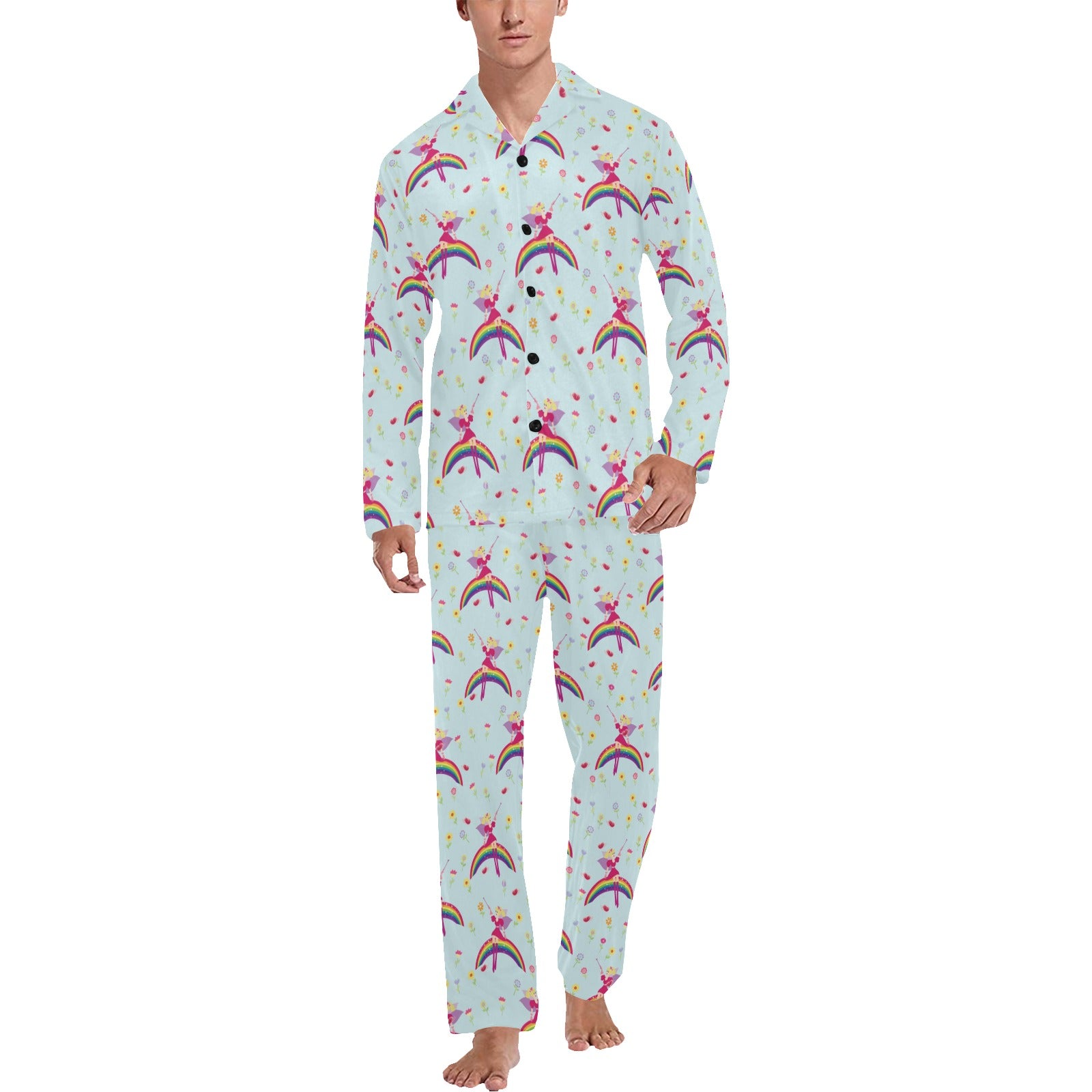 Fairy with Rainbow Print Pattern Men's Long Pajama Set
