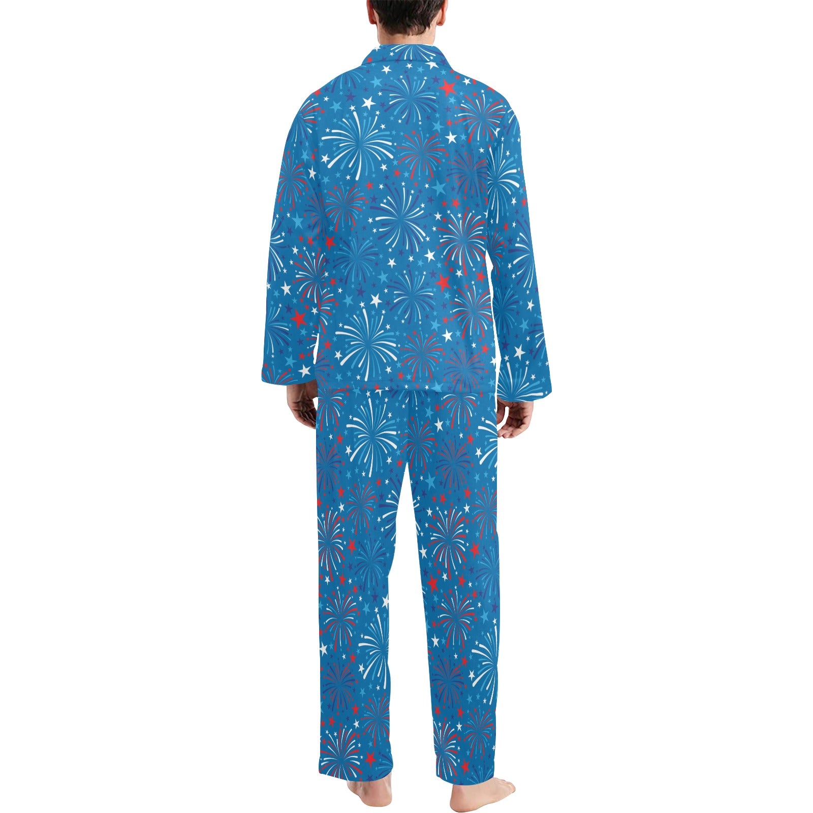 Firework Celebration Print Design LKS304 Men's Long Pajama Set custom-made-to-order and handcrafted to the highest quality standards.