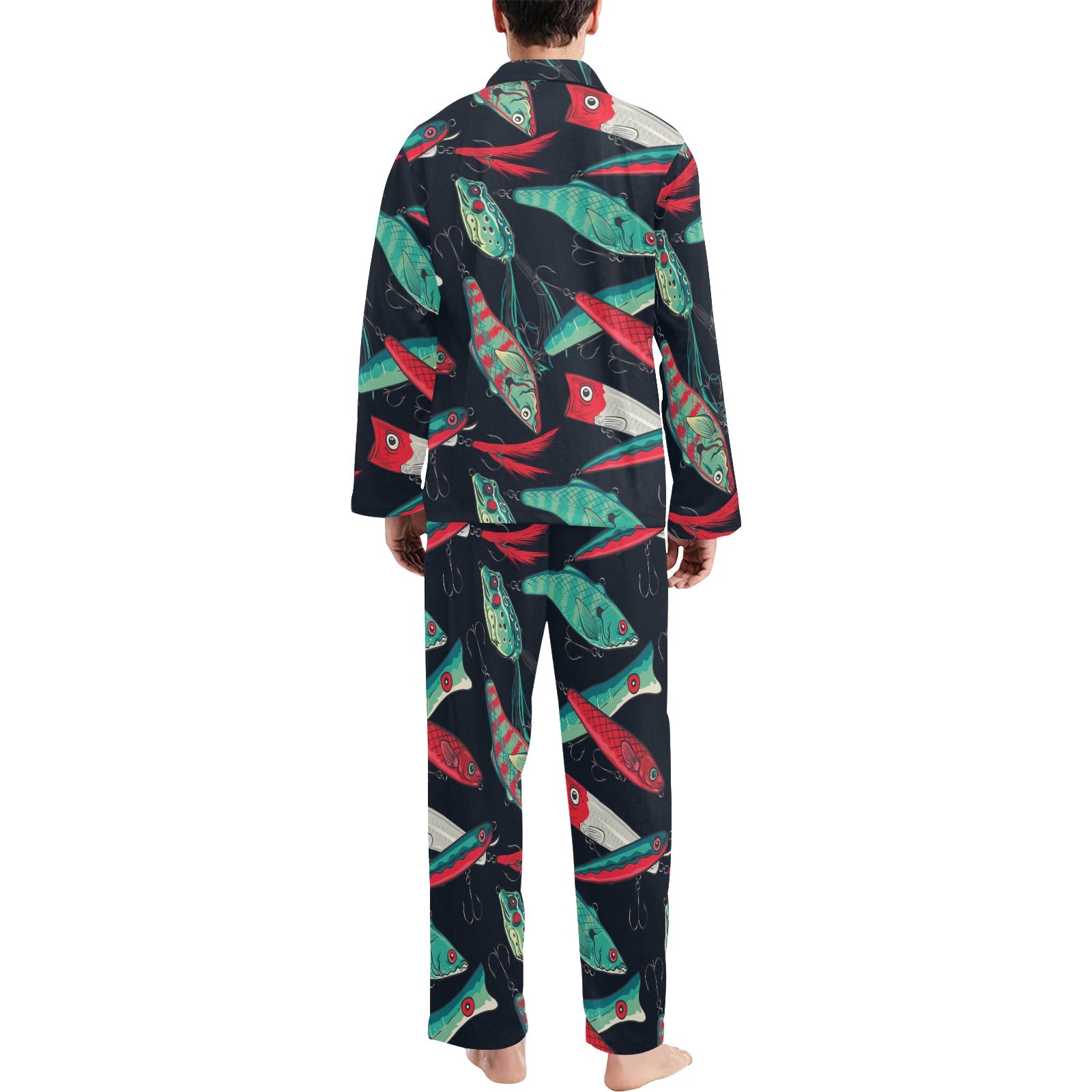 Fishing Bait Pattern Men's Long Pajama Set Made to Order Item. It is hand-cut and sewn just for your order! This process starts as soon as your order is placed and may have a processing time of 5-9 business days before it ships.