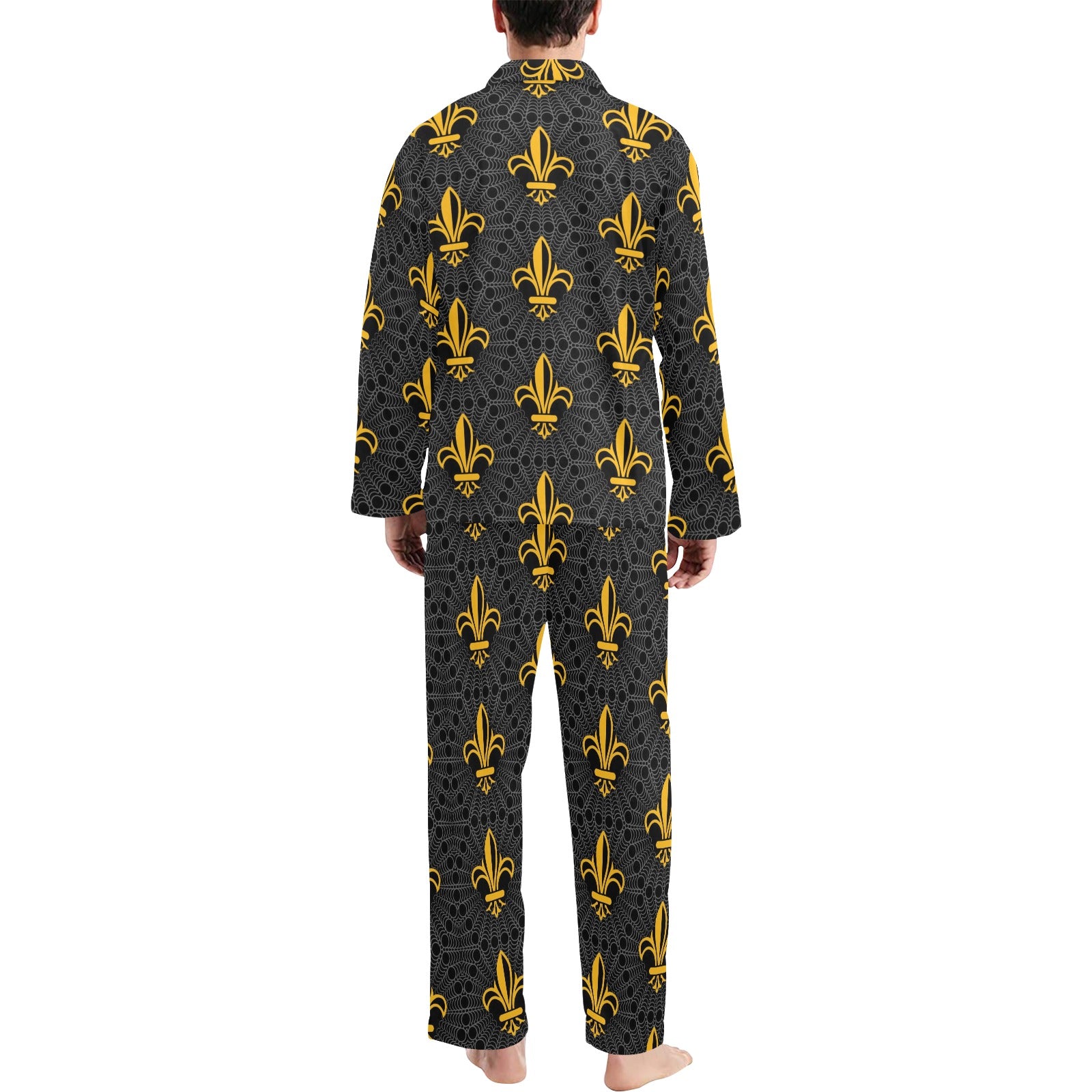 Fleur De Lis Gold Pattern Print Design 01 Men's Long Pajama Set