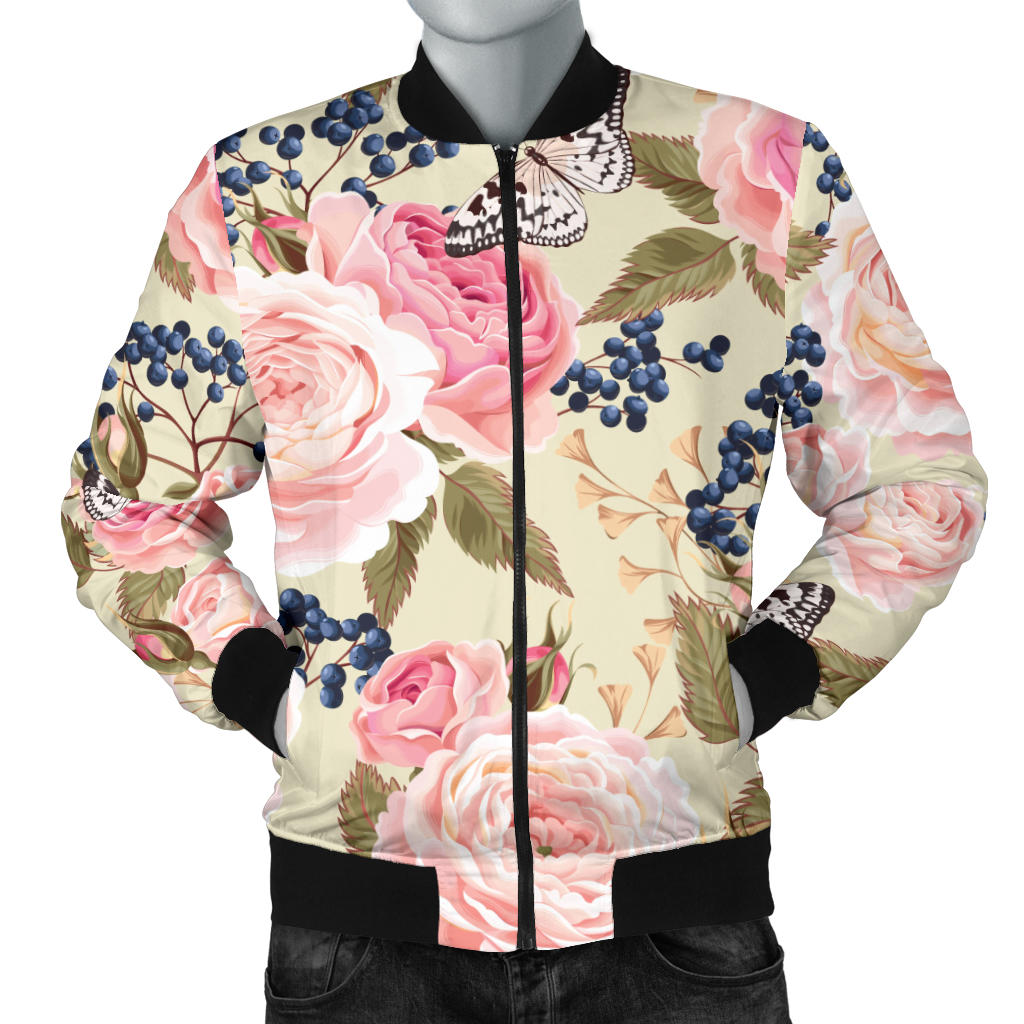 Floral Pink Butterfly Print Men Bomber Jacket are custom-made-to-order and handcrafted to the highest quality standards.