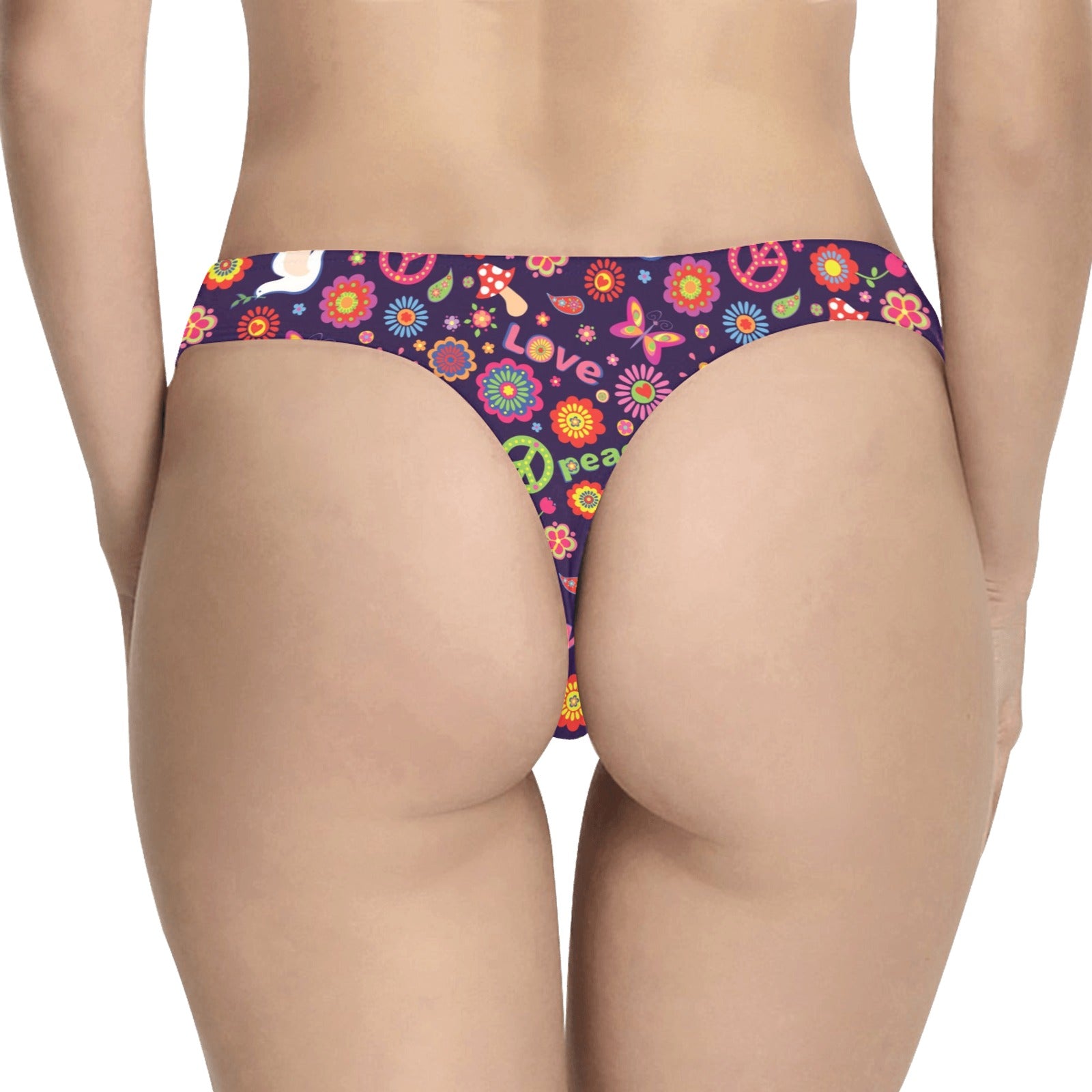 Flower Power Peace Design Print Women's Thongsis custom-made-to-order and handcrafted to the highest quality standards.