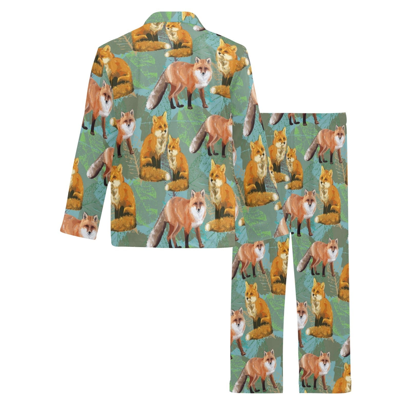 Fox Autumn leaves Themed Men's Long Pajama Set