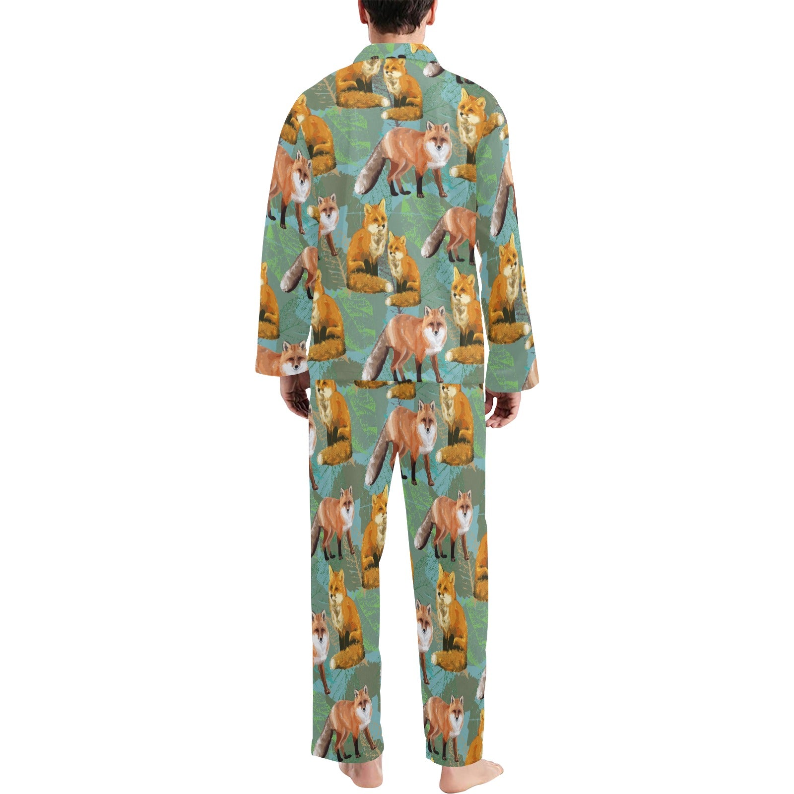 Fox Autumn leaves Themed Men's Long Pajama Set custom-made-to-order and handcrafted to the highest quality standards.