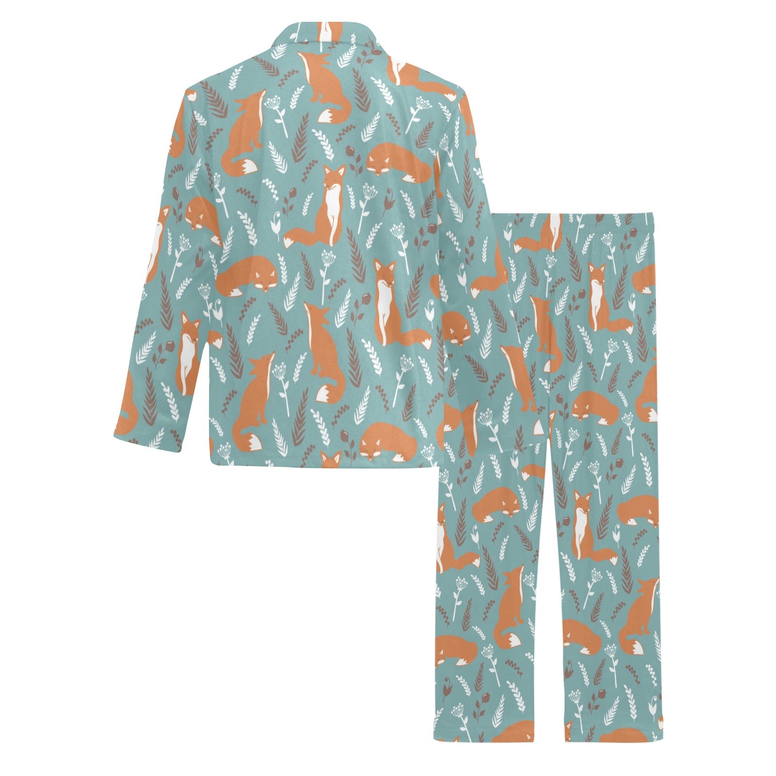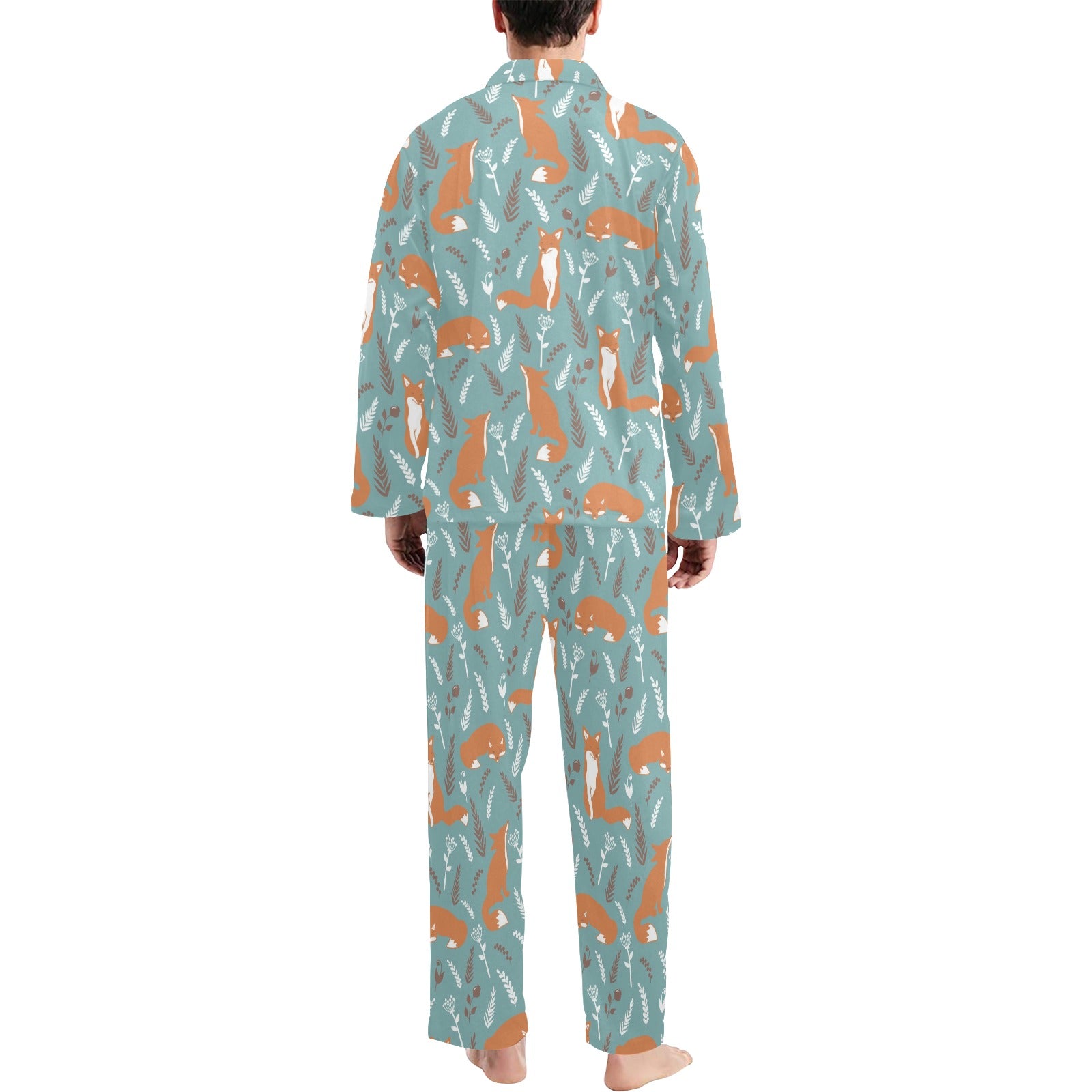 Fox Forest Print Pattern Men's Long Pajama Set custom-made-to-order and handcrafted to the highest quality standards.