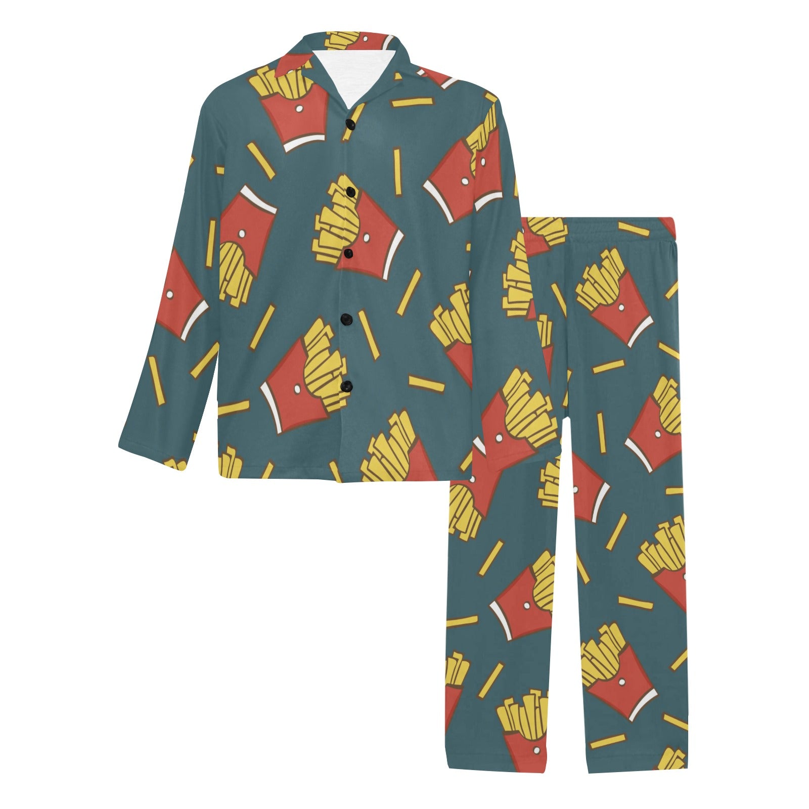French Fried Pattern Print Design 04 Men's Long Pajama Set custom-made-to-order and handcrafted to the highest quality standards.