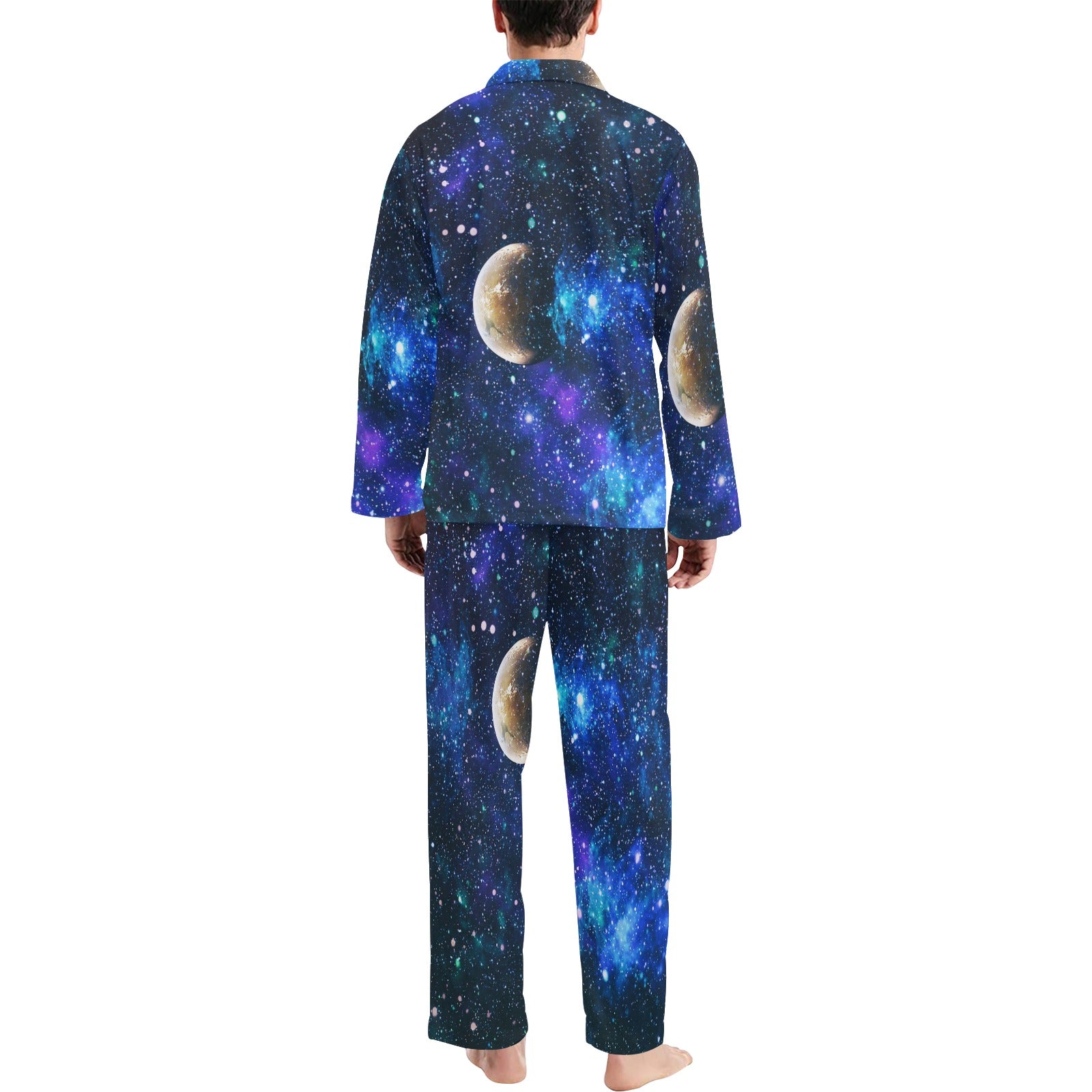 Galaxy Stardust Planet Space Print Men's Long Pajama Set custom-made-to-order and handcrafted to the highest quality standards.