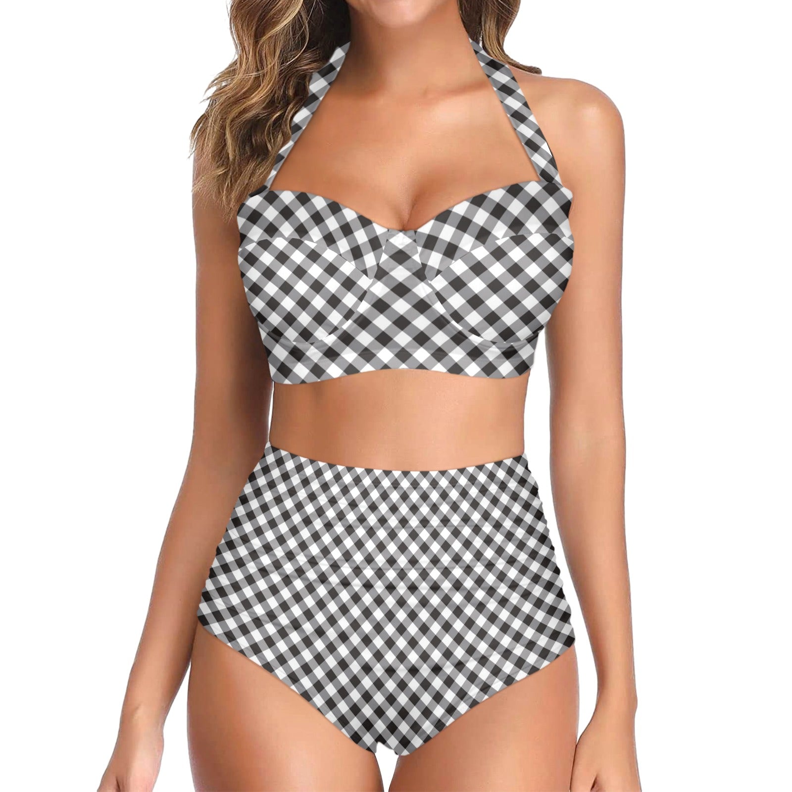 Gingham Print Design LKS402 Halter Neck Bikini Swimsuit made-to-order and handcrafted to the highest quality standards.
