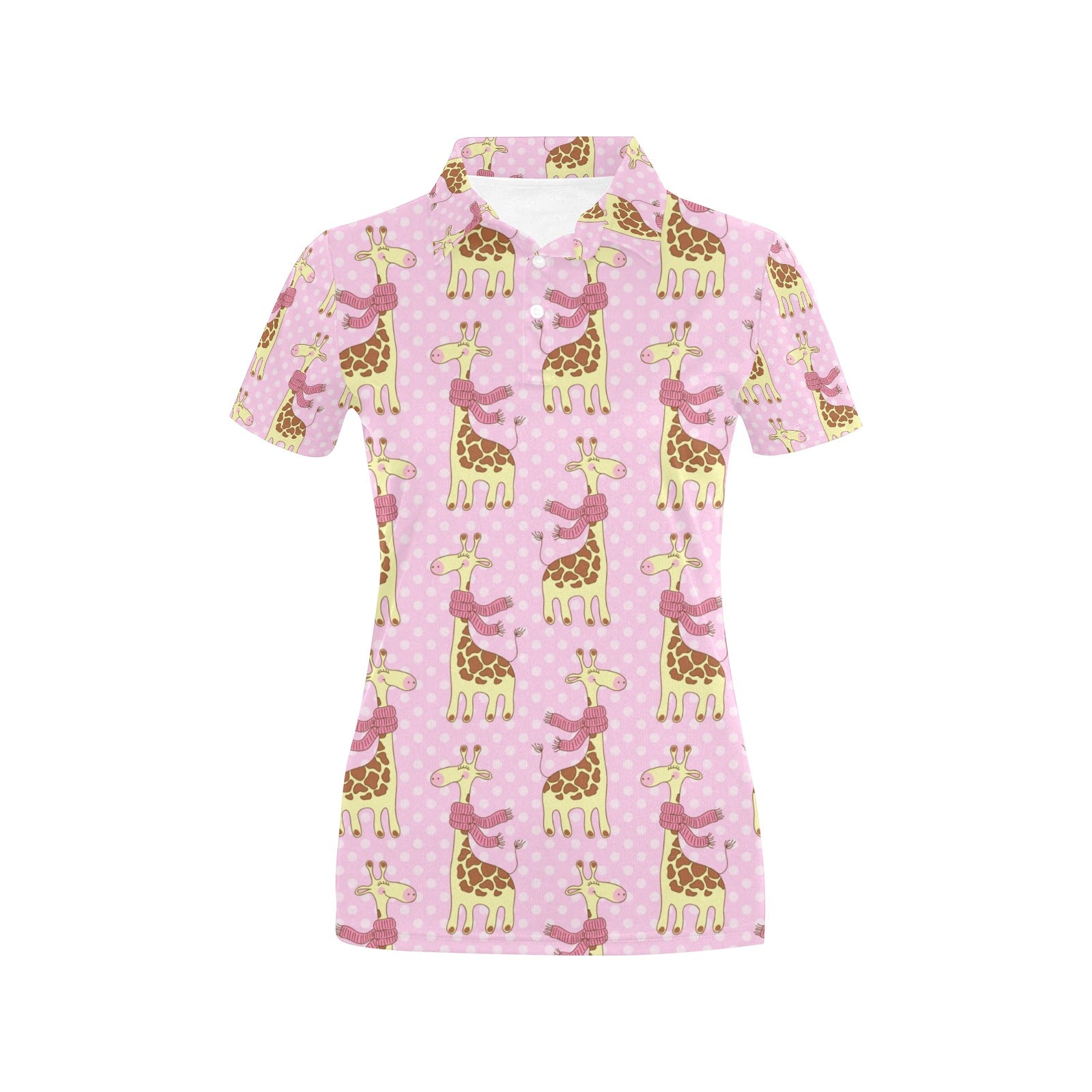Giraffe Cute Pink Polka Dot Print Women's Polo Shirt