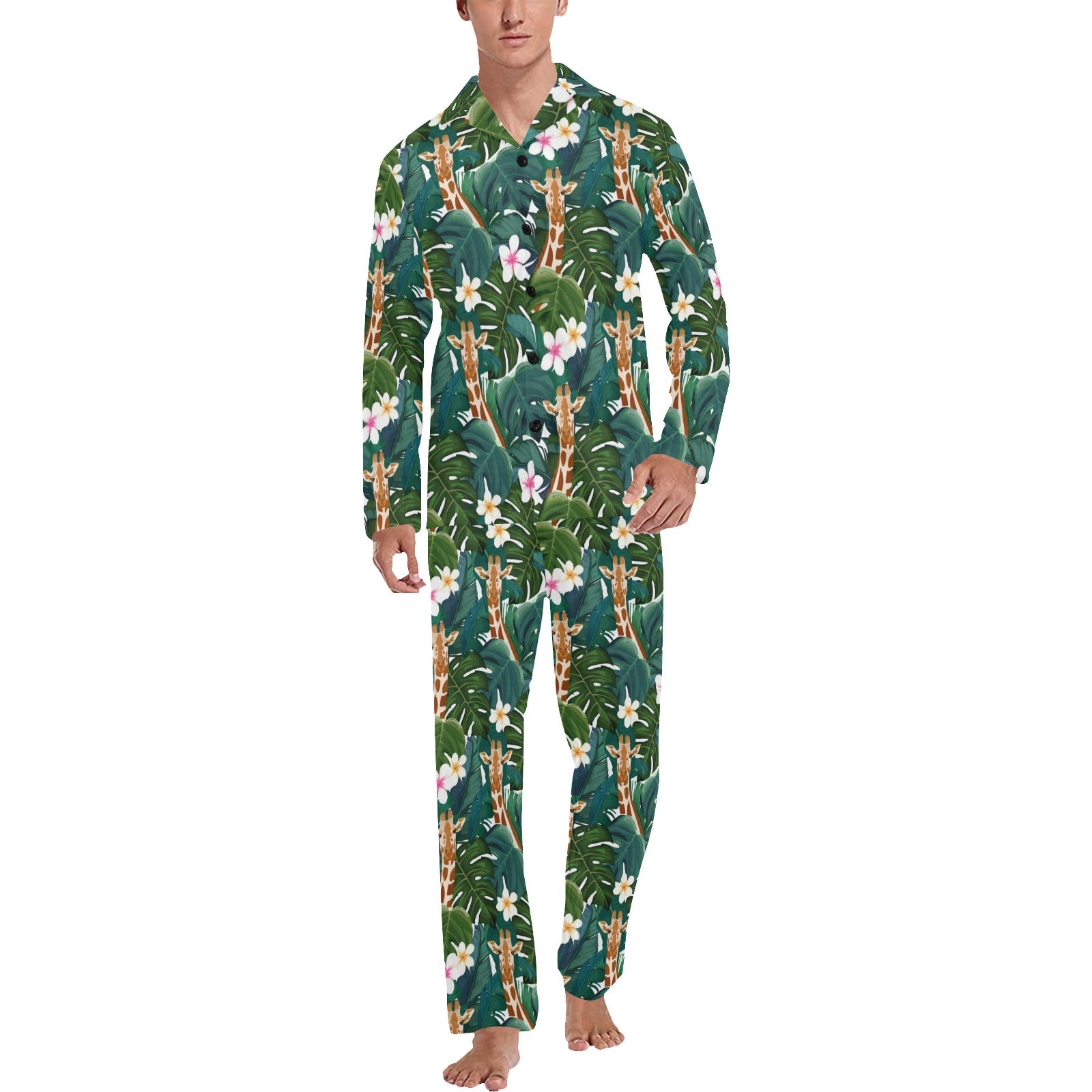 Giraffe Jungle Design Print Men's Long Pajama Set custom-made-to-order and handcrafted to the highest quality standards.
