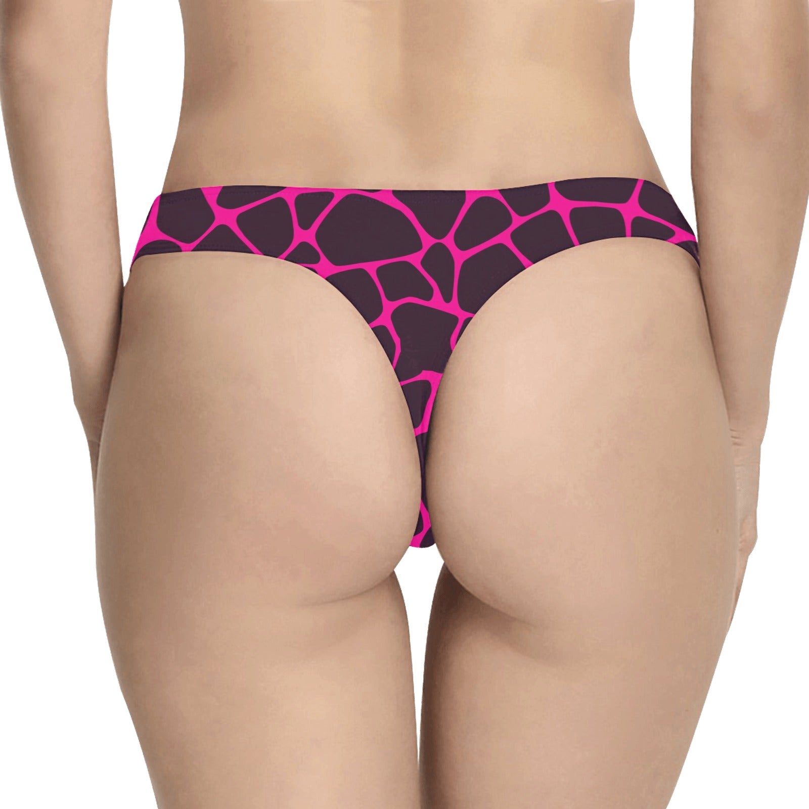 Giraffe Pink Background Texture Print Women's Thongsis custom-made-to-order and handcrafted to the highest quality standards.