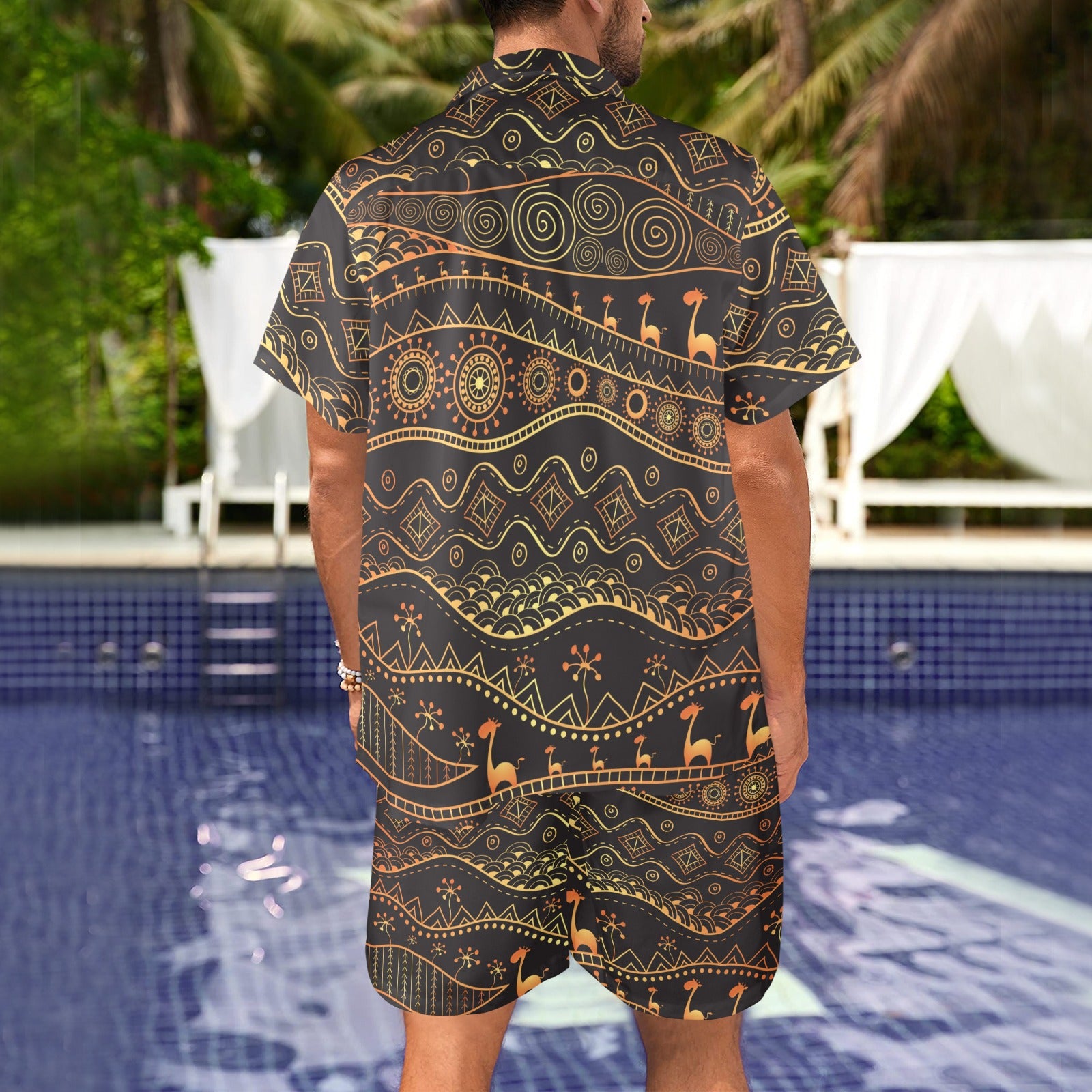 Gold African Design Men's Beach Shirt and Shorts Set