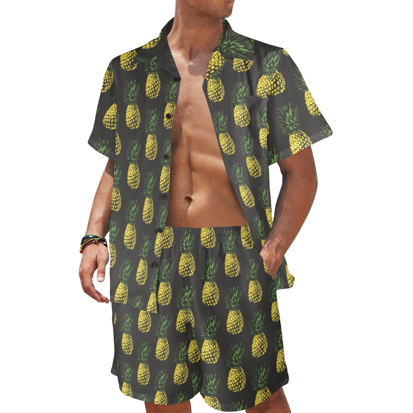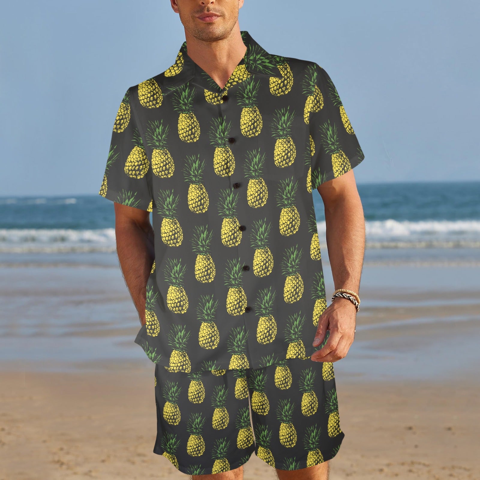 Gold Pineapple Men's Beach Shirt and Shorts Set
