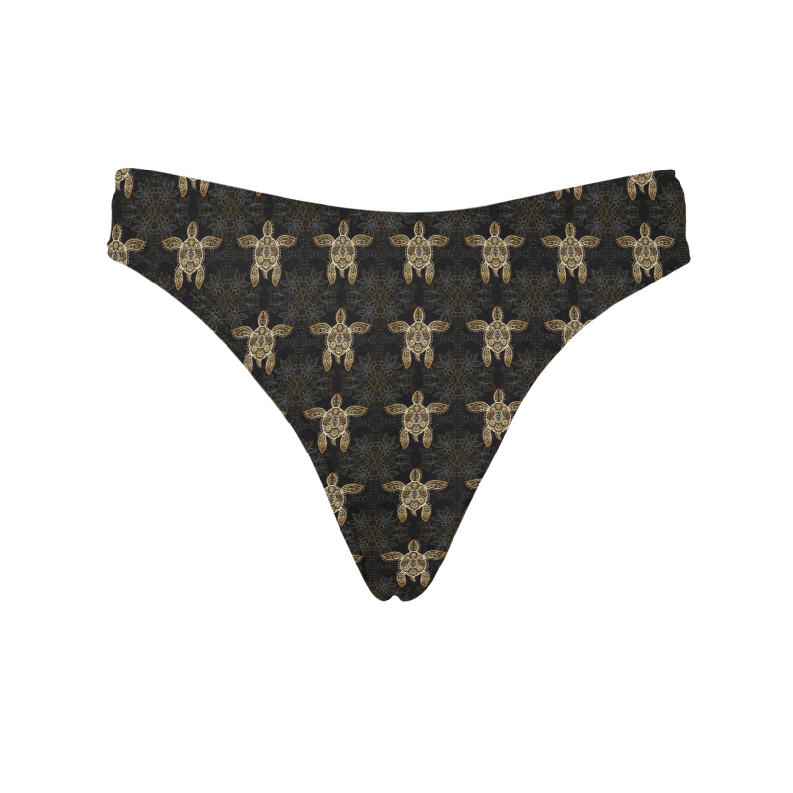 Gold Tribal Turtle Polynesian Design Women's Thongsis custom-made-to-order and handcrafted to the highest quality standards.