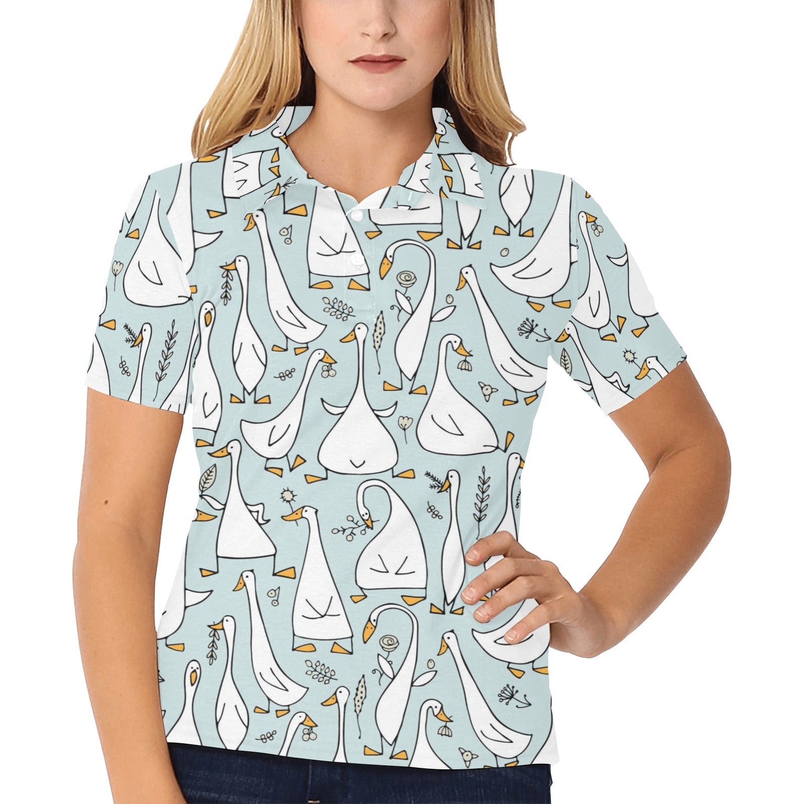Goose Pattern Print Design 03 Women's Polo Shirt
