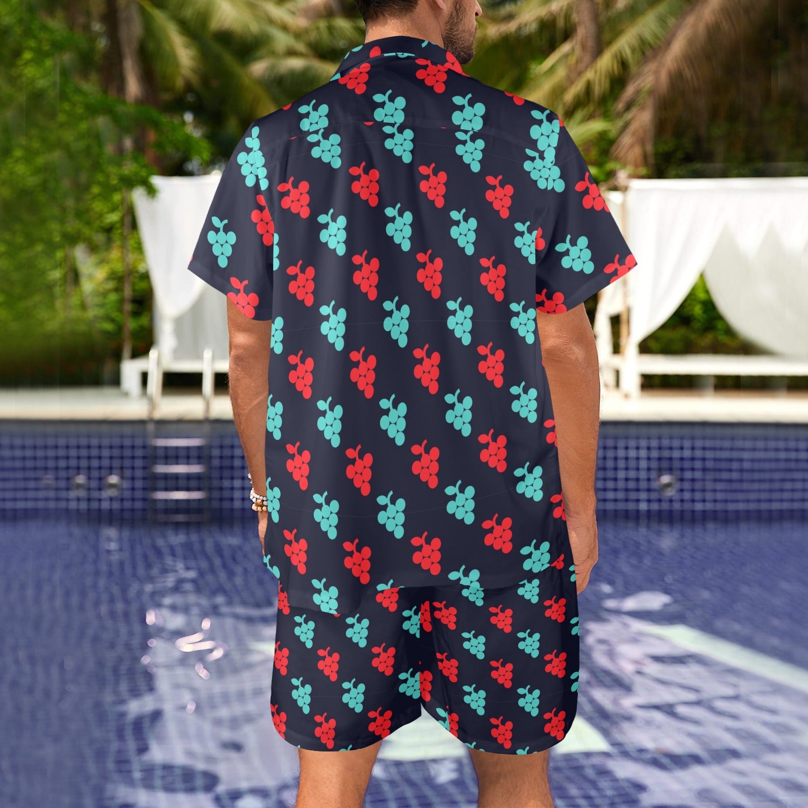Grape Pattern Print Design GP07 Men's Beach Shirt and Shorts Set. It is hand-cut and sewn just for your order! This process starts as soon as your order is placed and may have a processing time of 5-9 business days before it ships.