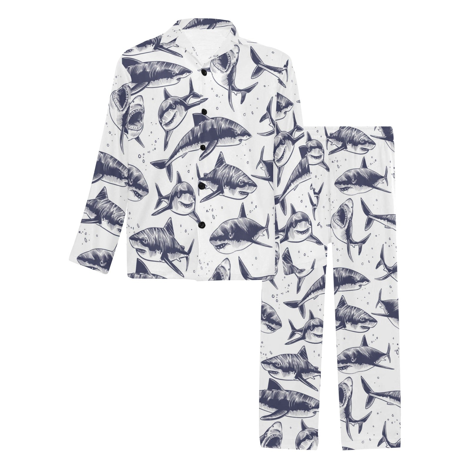 Great White Shark Pattern Print Design 02 Men's Long Pajama Set custom-made-to-order and handcrafted to the highest quality standards.
