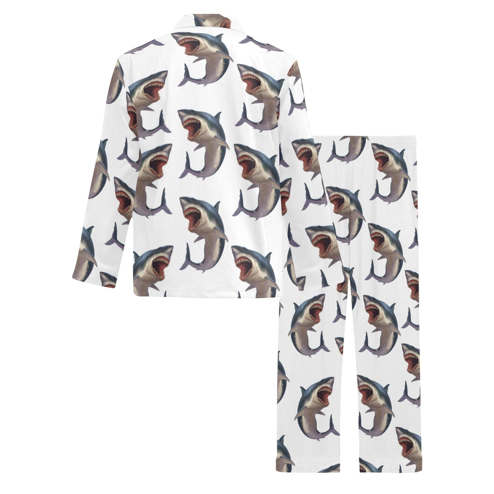 Great White Shark Pattern Print Design 03 Men's Long Pajama Set custom-made-to-order and handcrafted to the highest quality standards.