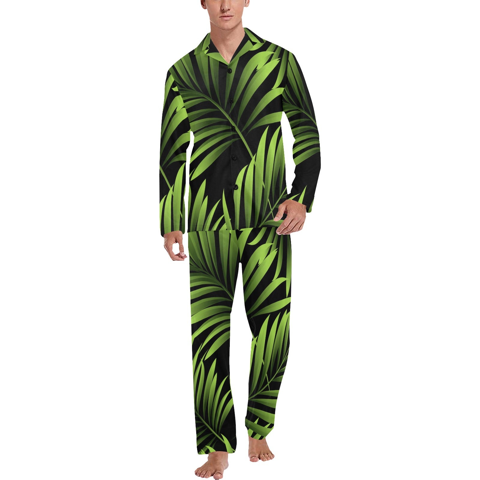 Green Neon Tropical Palm Leaves Men's Long Pajama Set
