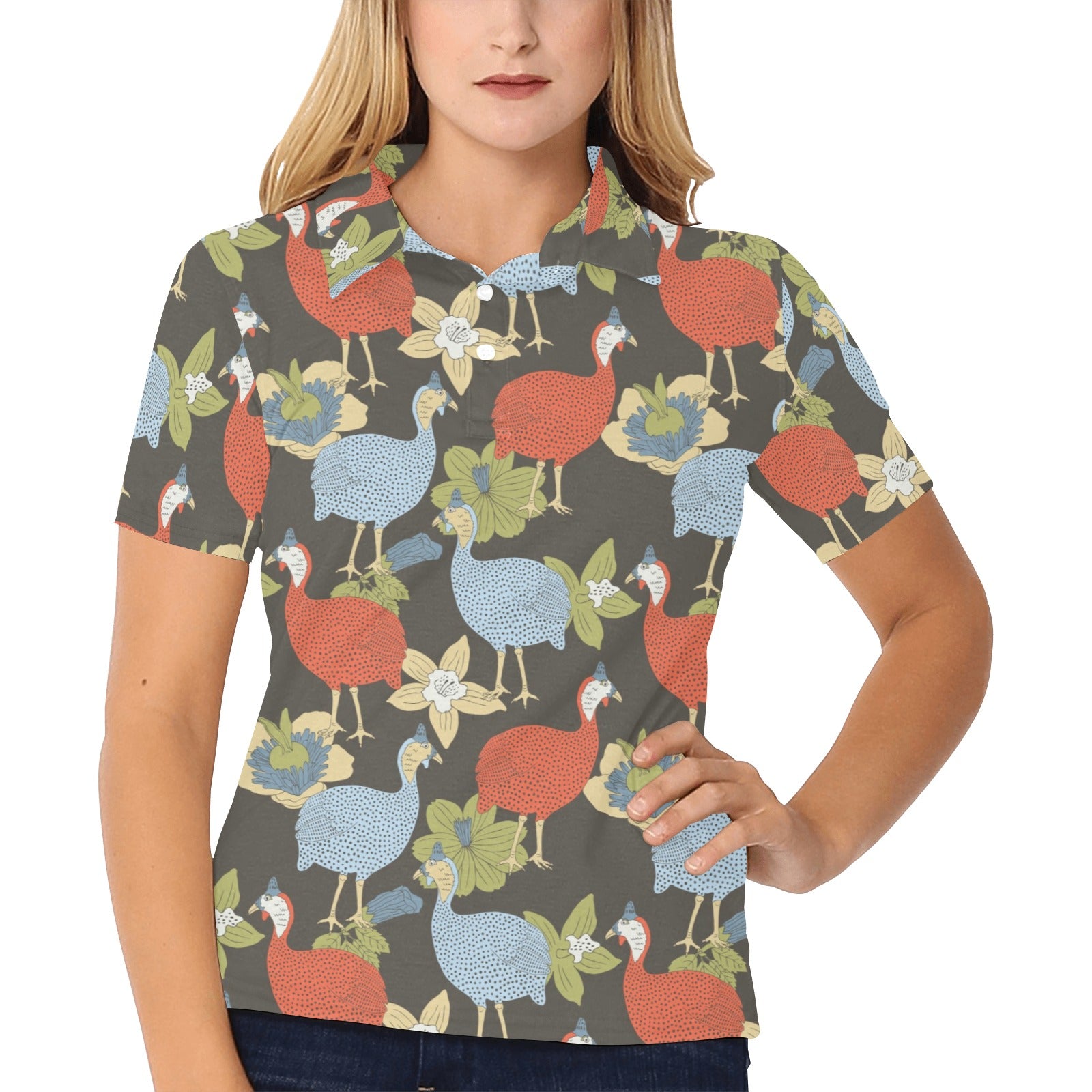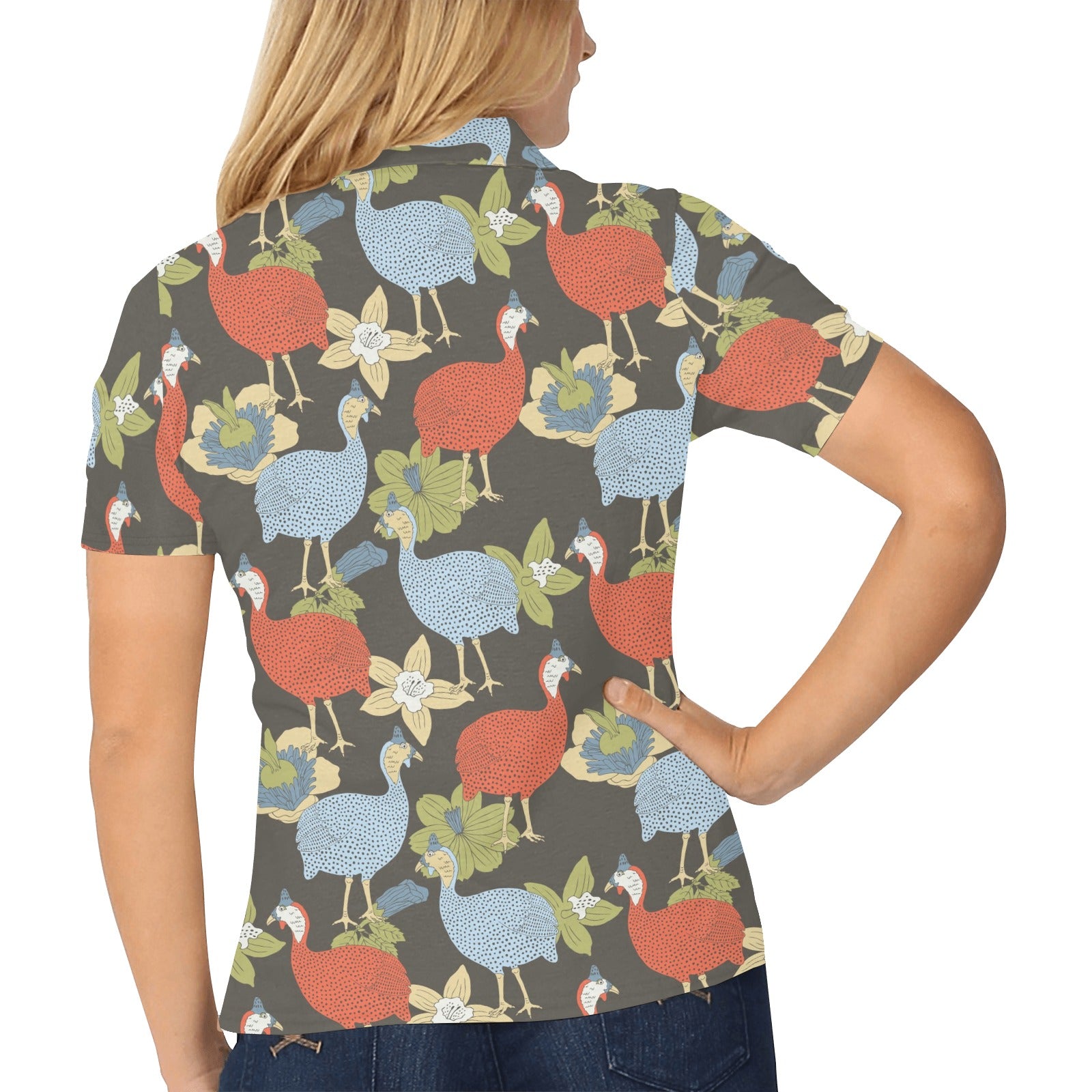 Guinea Fowl Pattern Print Design 02 Women's Polo Shirt