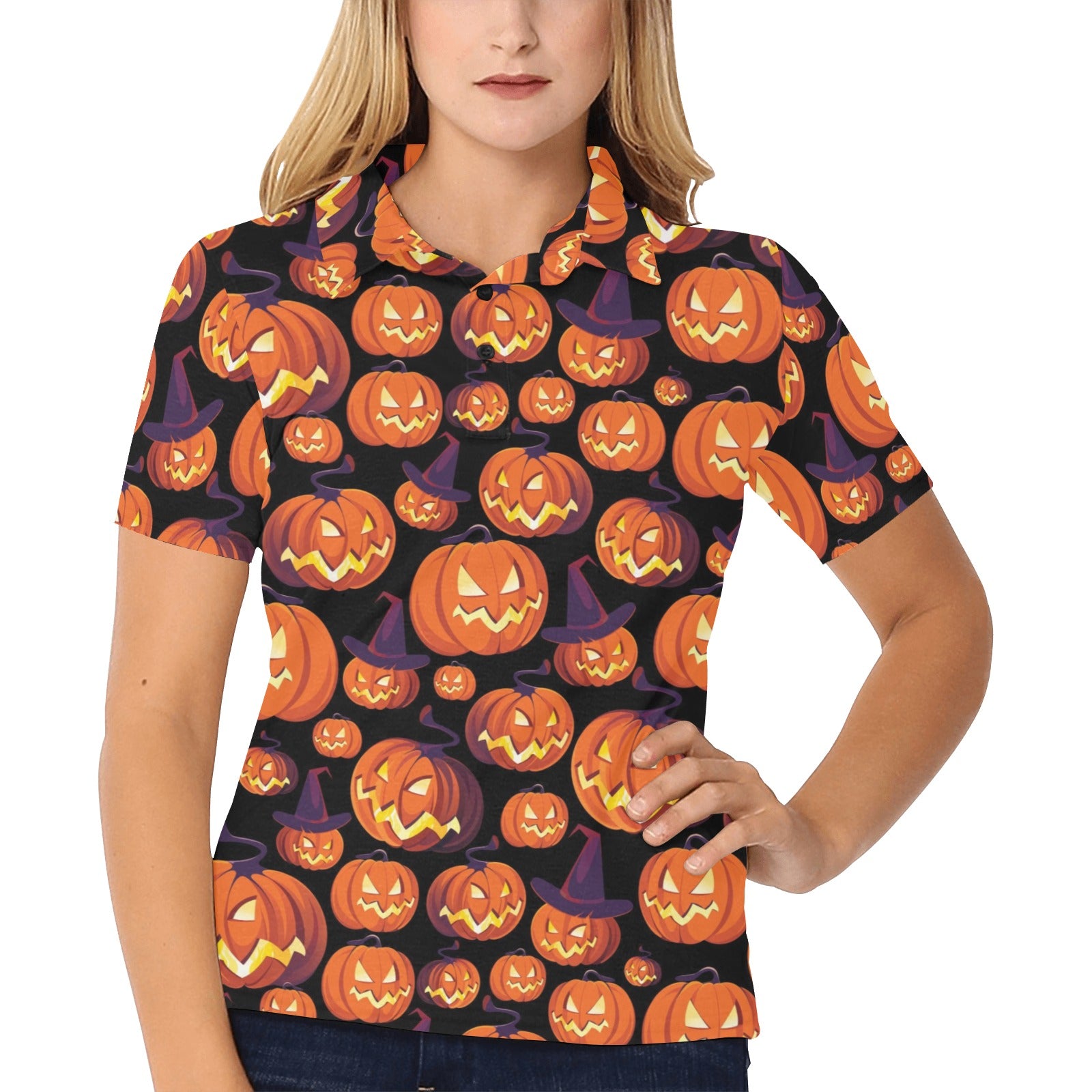 Halloween Pattern Print Design 04 Women's Polo Shirt