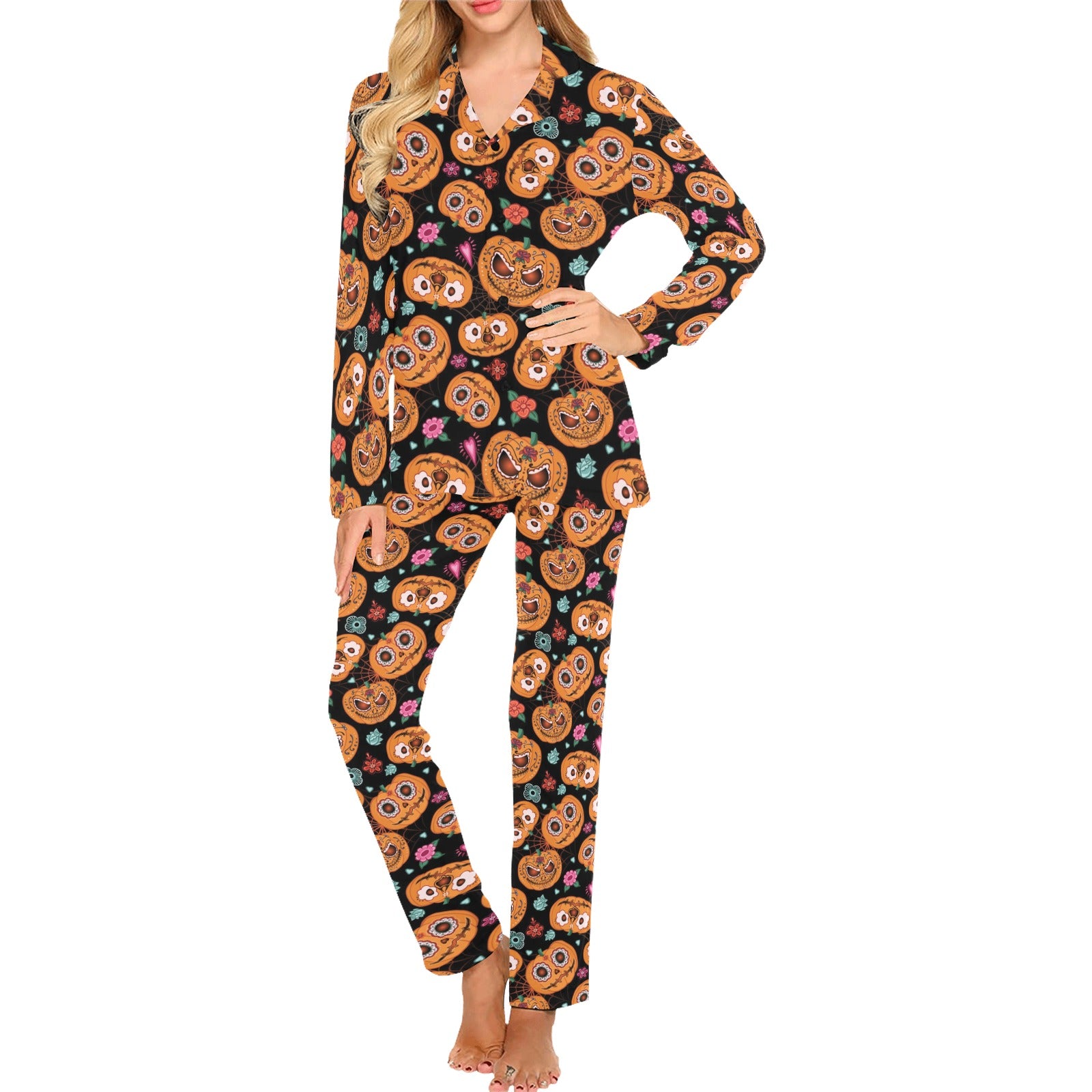 Halloween Print Design LKS402 Women's Long Pajama Set Made to Order Item. It is hand-cut and sewn just for your order! This process starts as soon as your order is placed and may have a processing time of 5-9 business days before it ships.