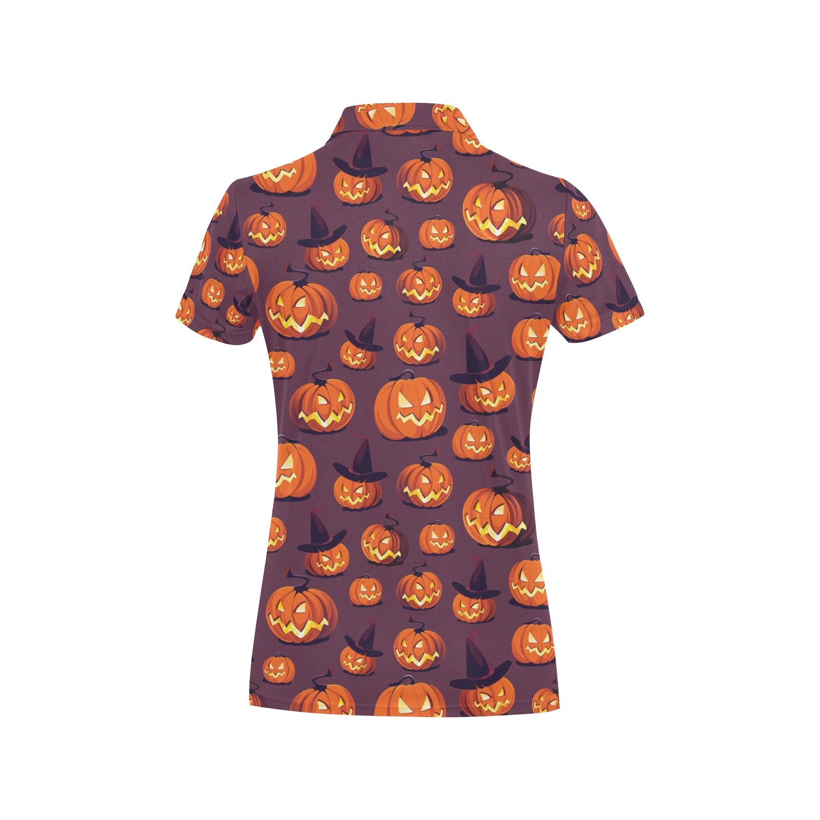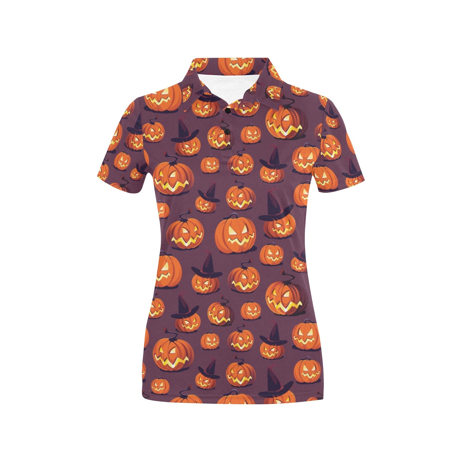 Halloween Pumpkin Pattern Print Design 03 Women's Polo Shirt