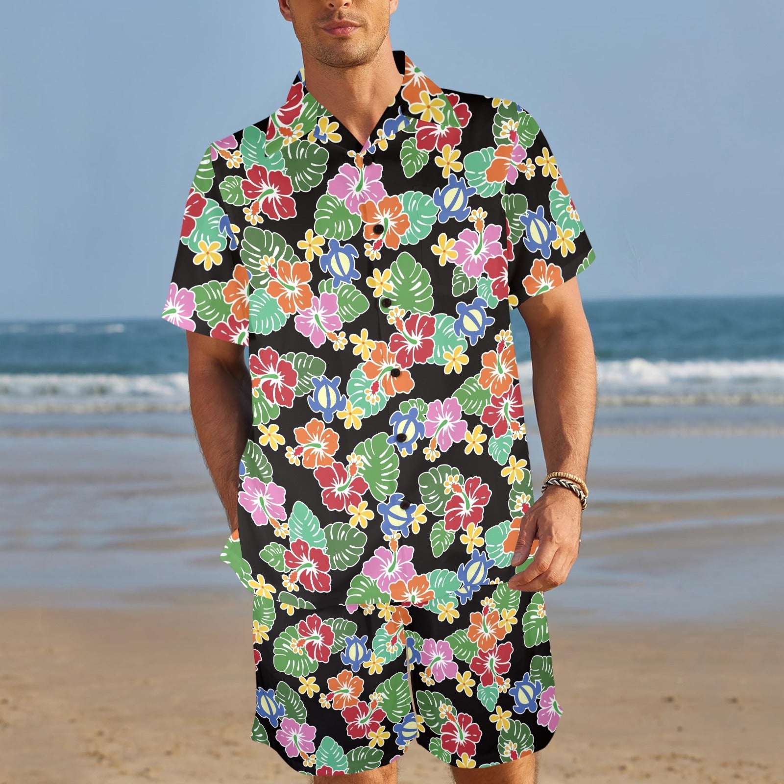 Hawaiian Themed Pattern Print Design H010 Men's Beach Shirt and Shorts Set. It is hand-cut and sewn just for your order! This process starts as soon as your order is placed and may have a processing time of 5-9 business days before it ships.
