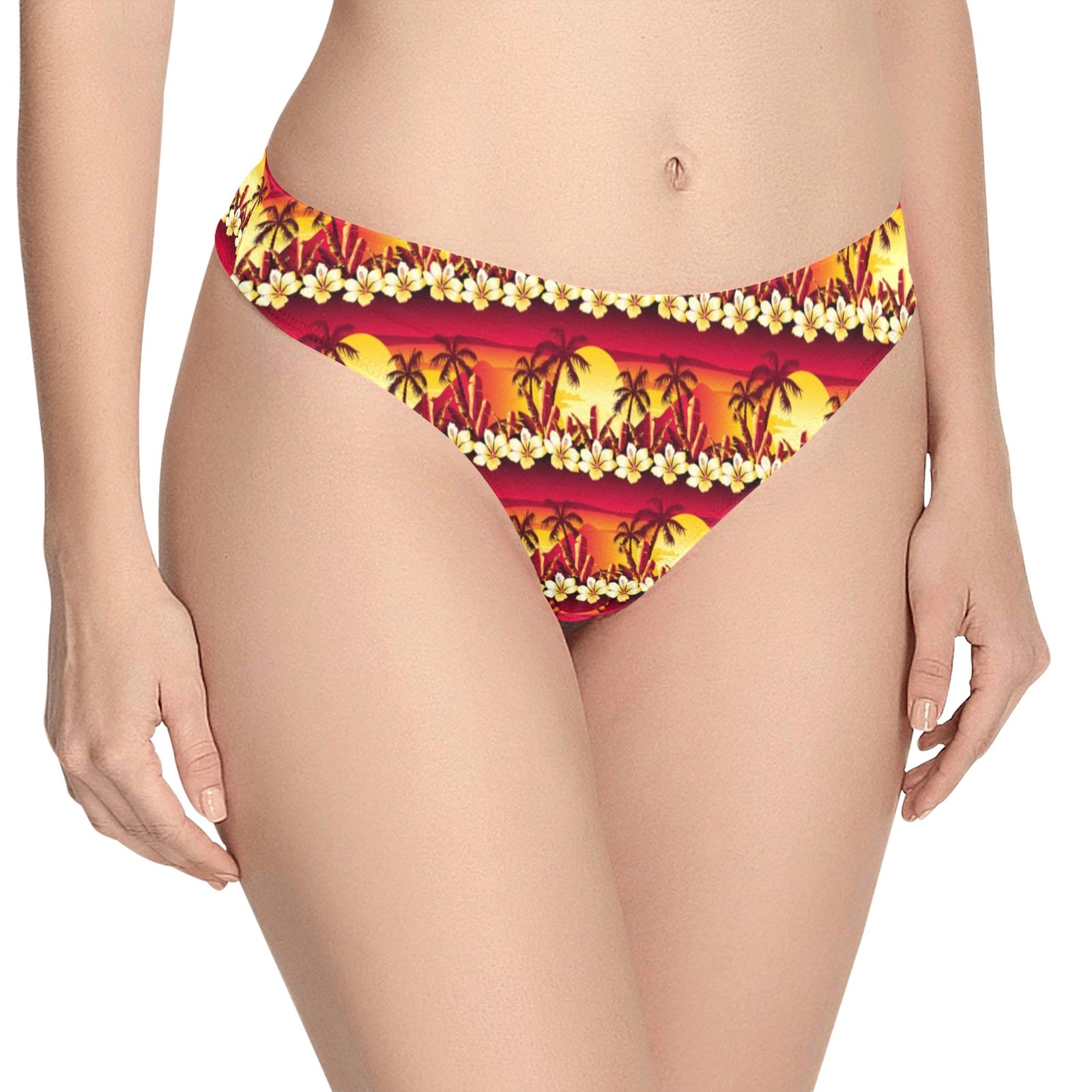Hawaiian Tropical Sunset Hibiscus Print Women's Thongsis custom-made-to-order and handcrafted to the highest quality standards.