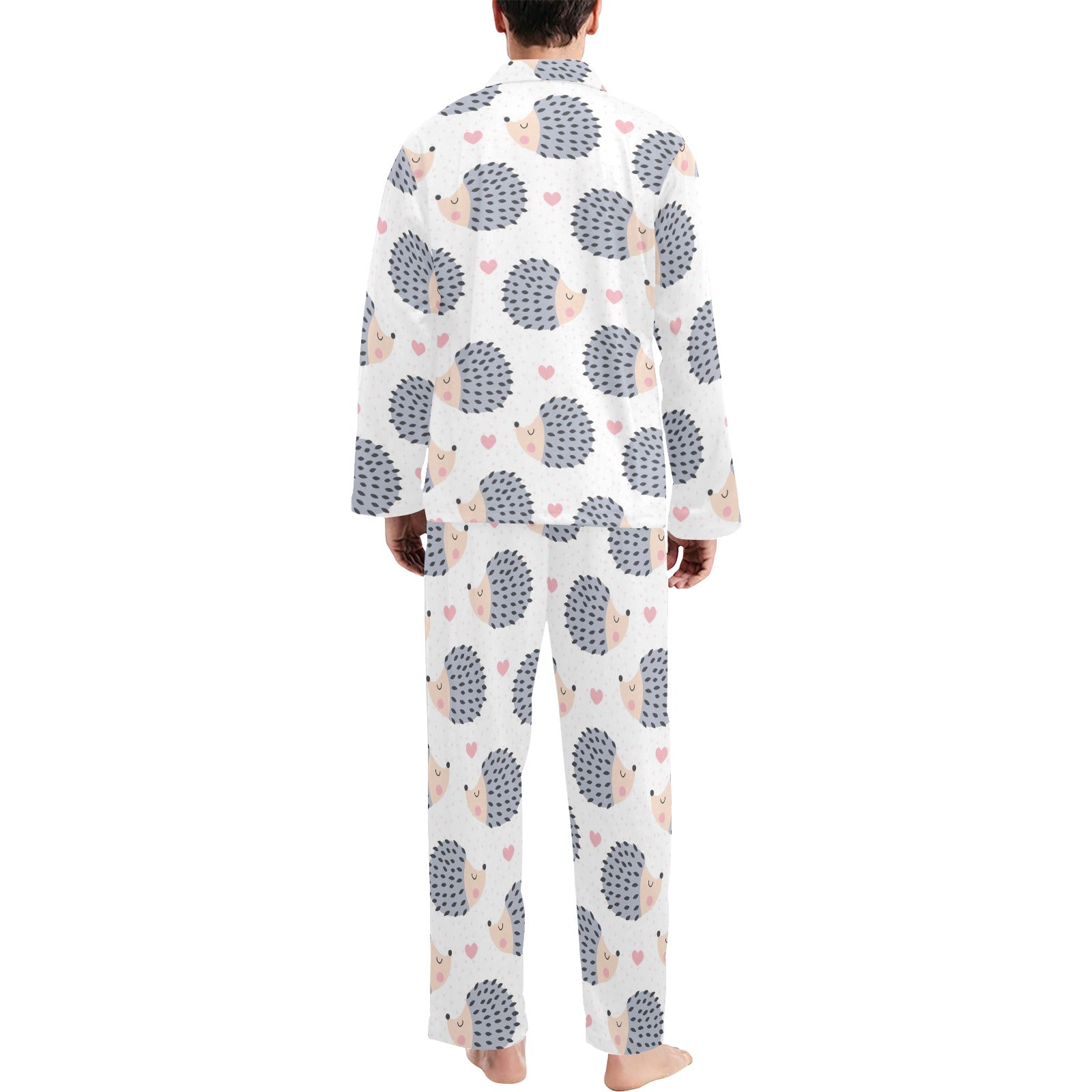 Hedgehog Baby Pattern Print Design 03 Men's Long Pajama Set custom-made-to-order and handcrafted to the highest quality standards.