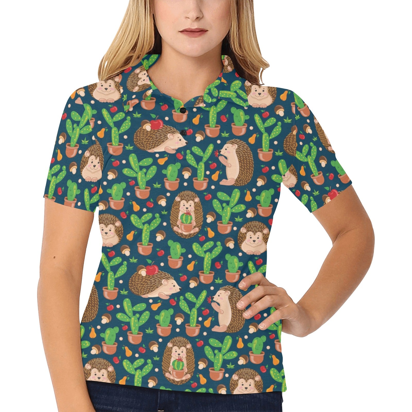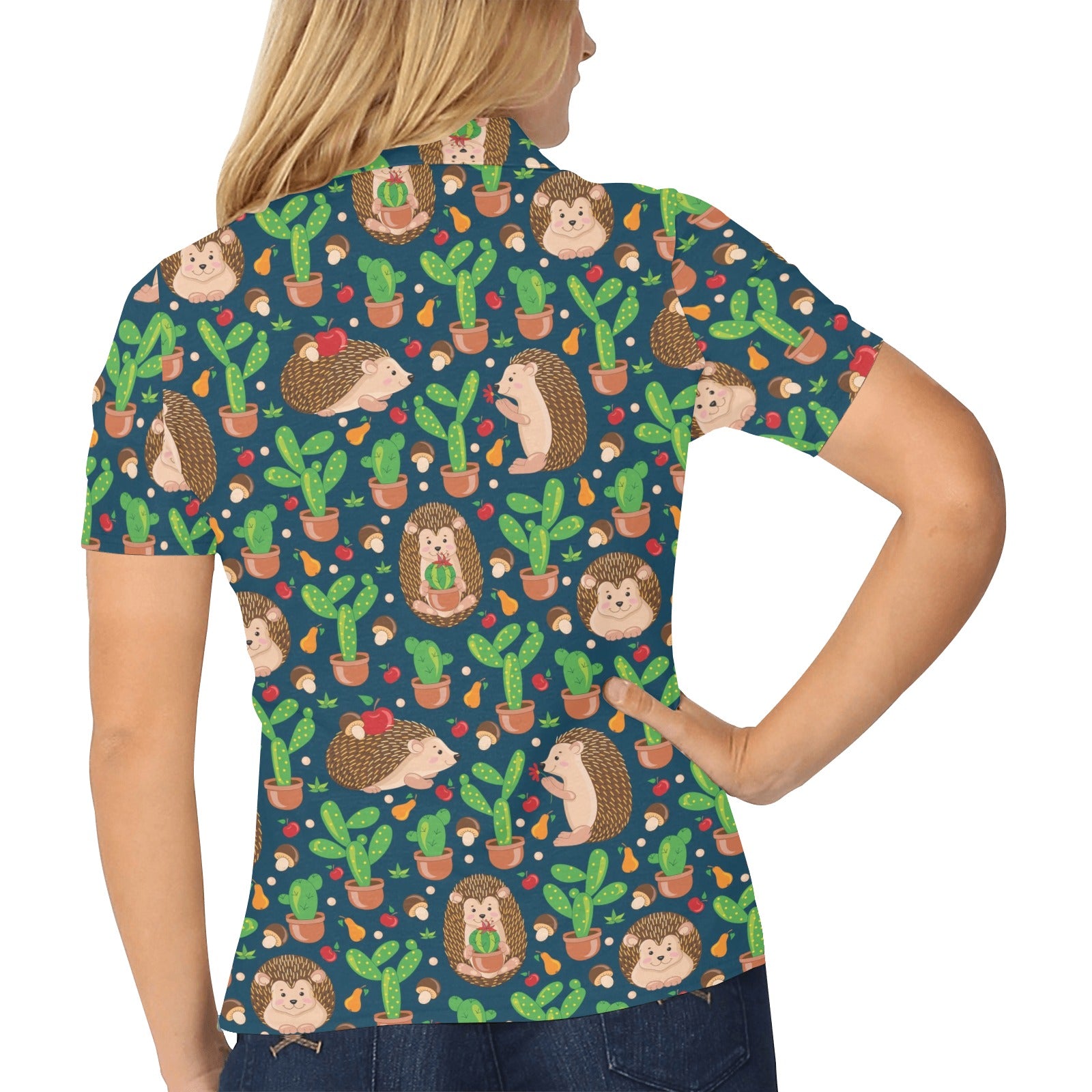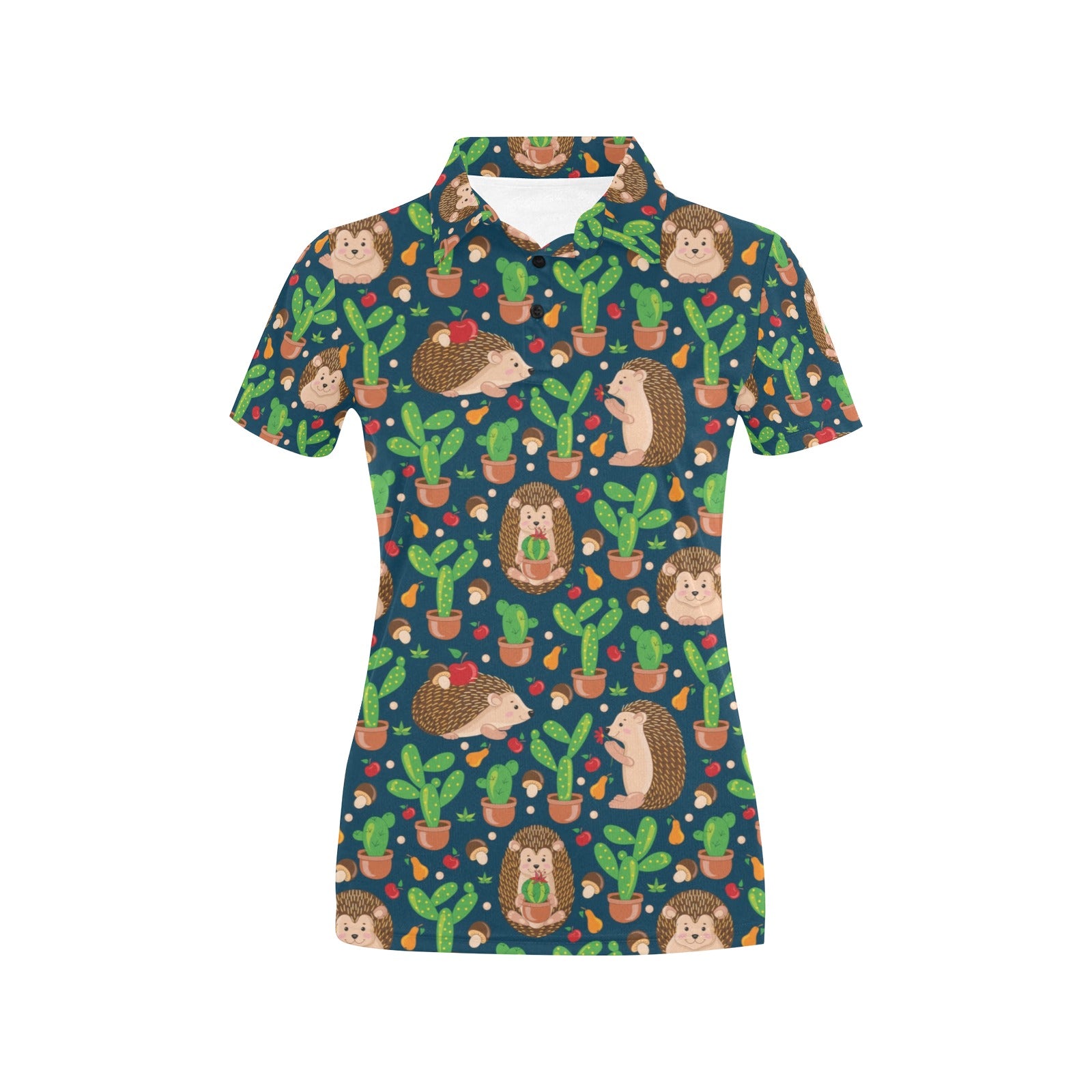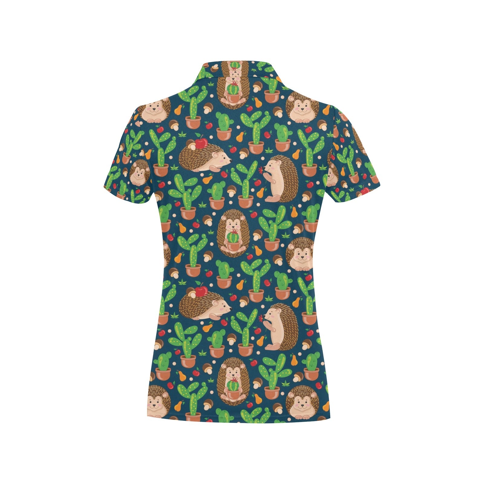 Hedgehog Cactus Pattern Print Design 04 Women's Polo Shirt
